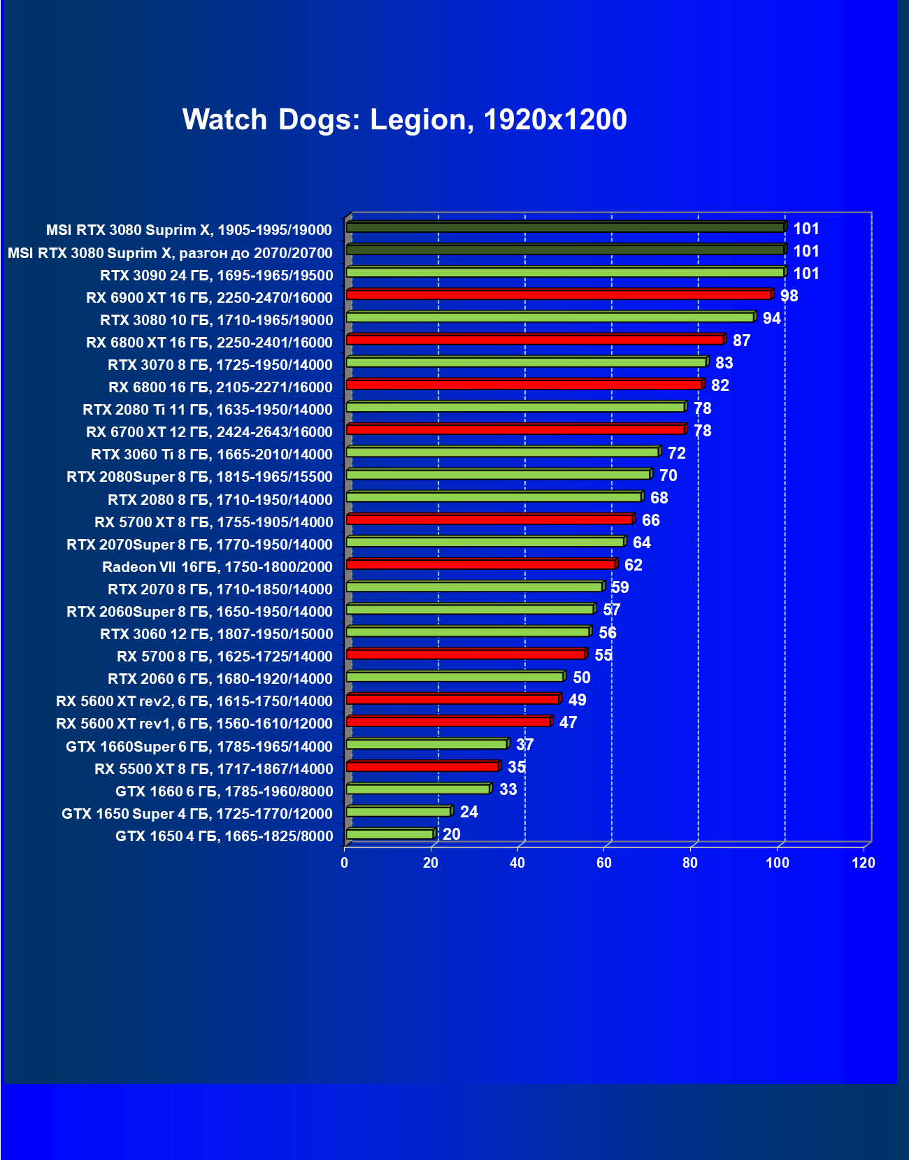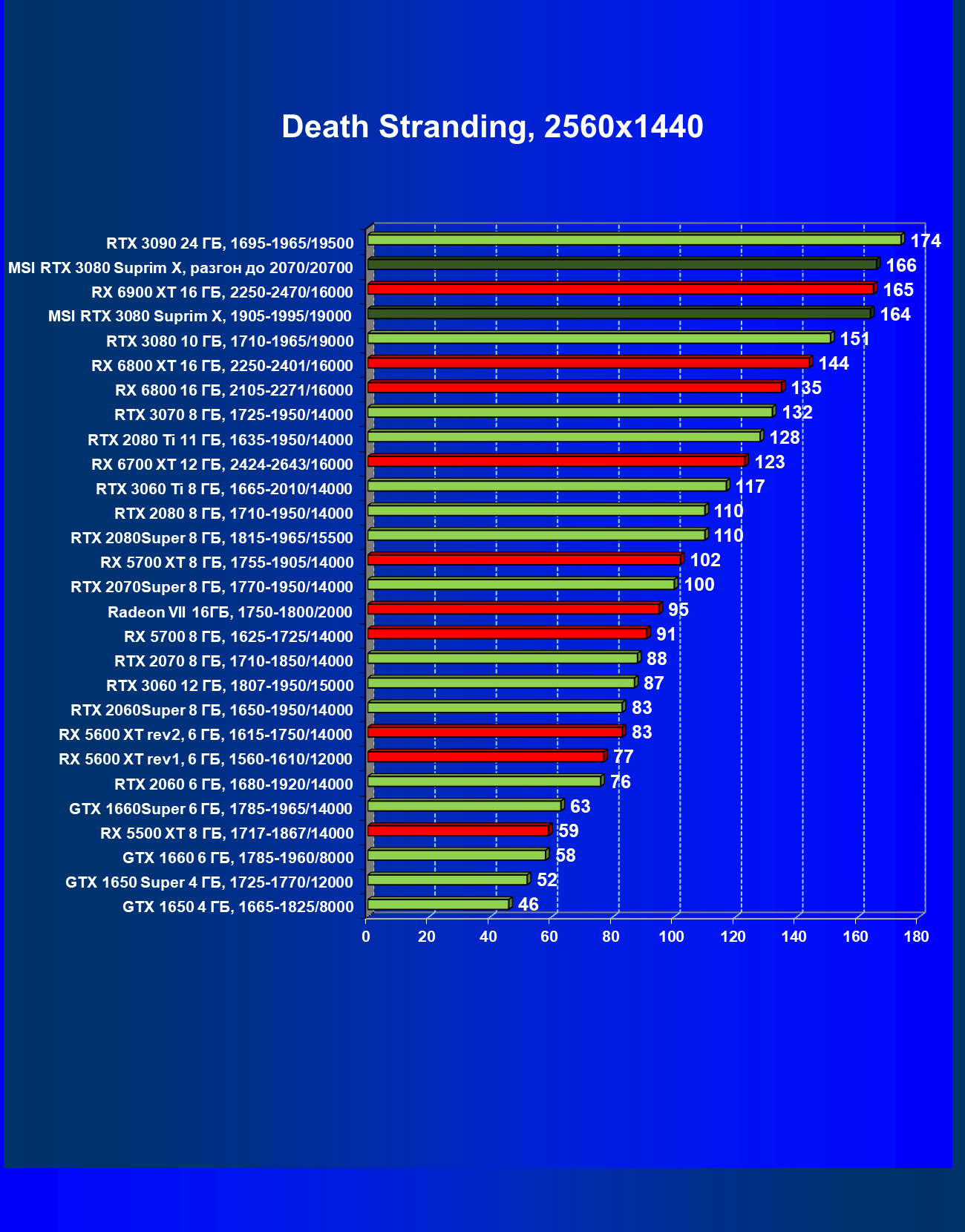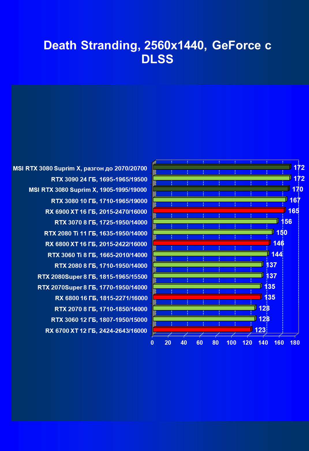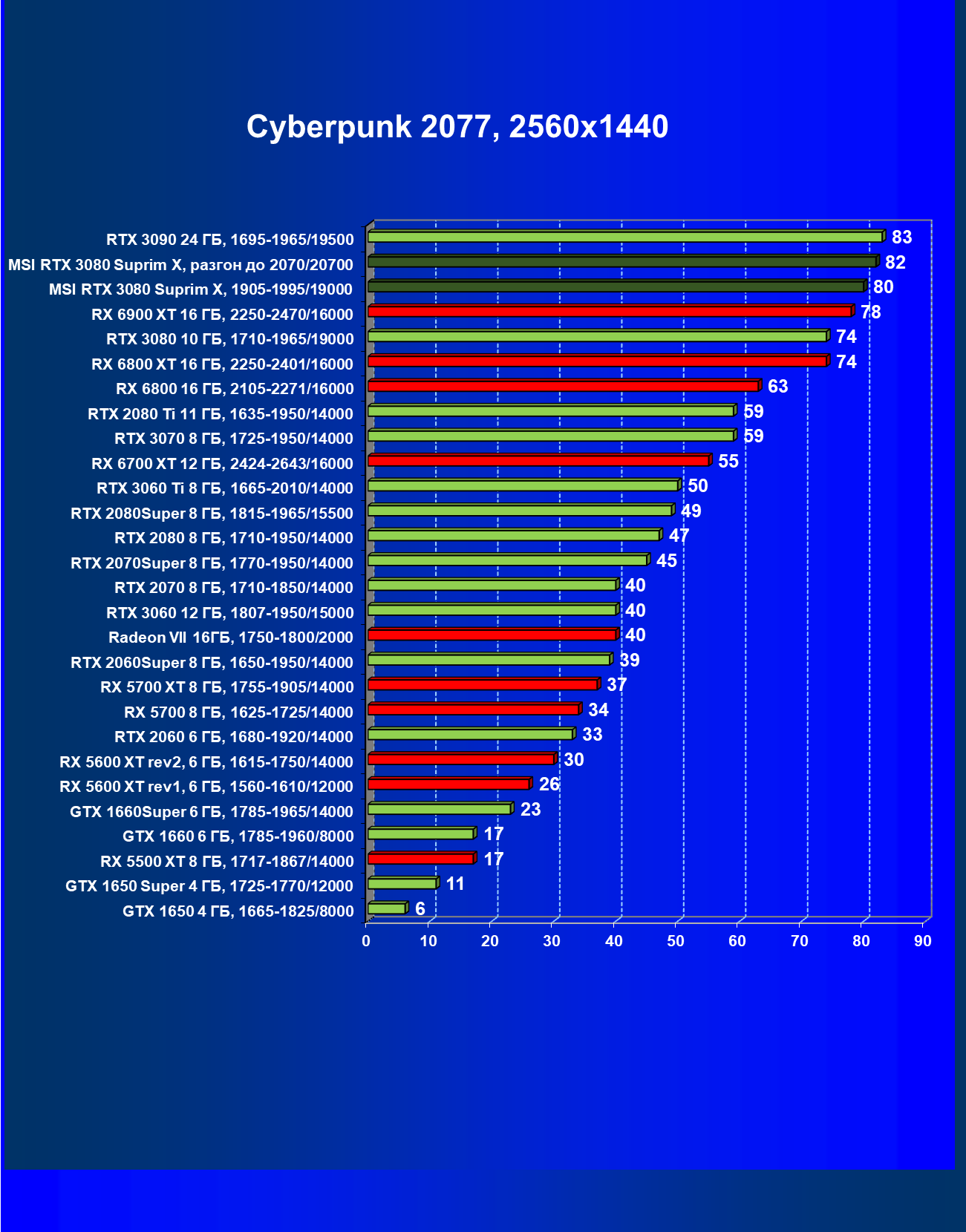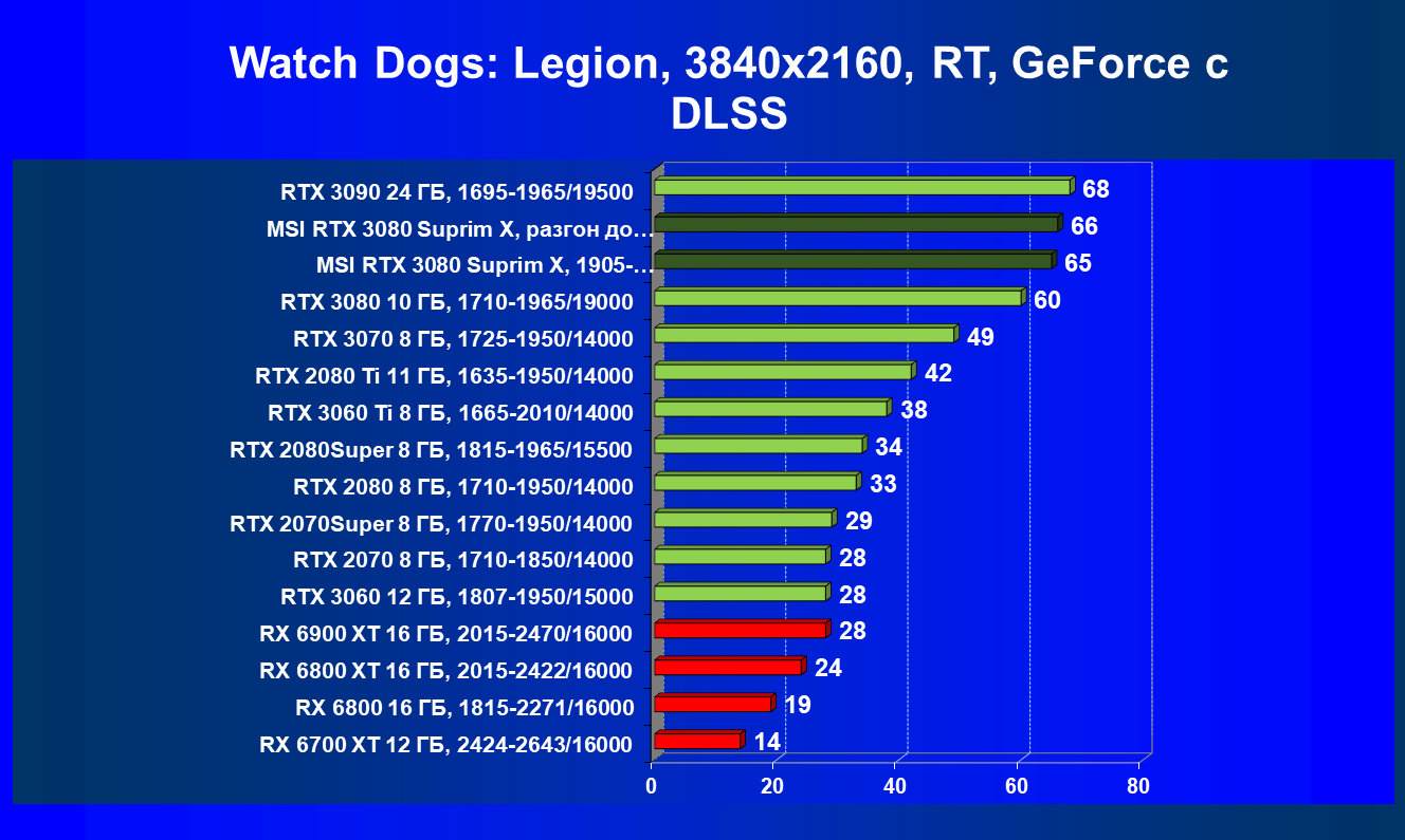 | 11 | MSI RTX 3080 Suprim X, 1905—1995/19000 | 81 | 1694 | 210 000 |