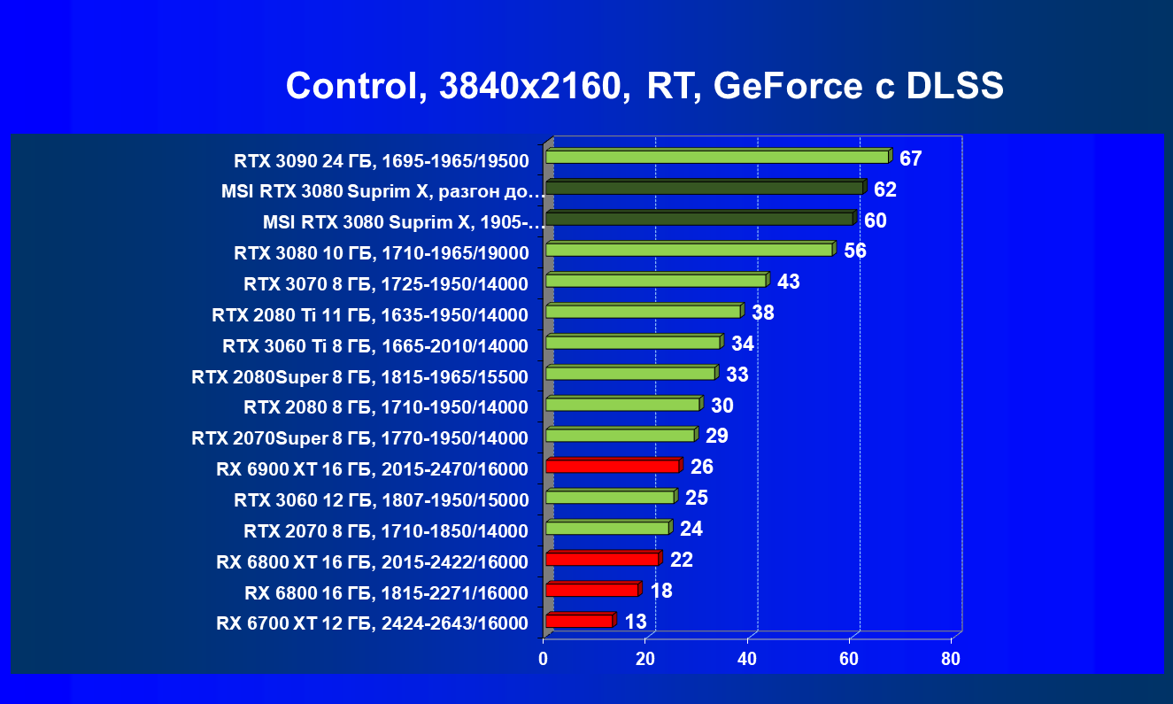 | 03 | MSI RTX 3080 Suprim X, разгон до 2070/20700 | 860 | 41 | 210 000 |