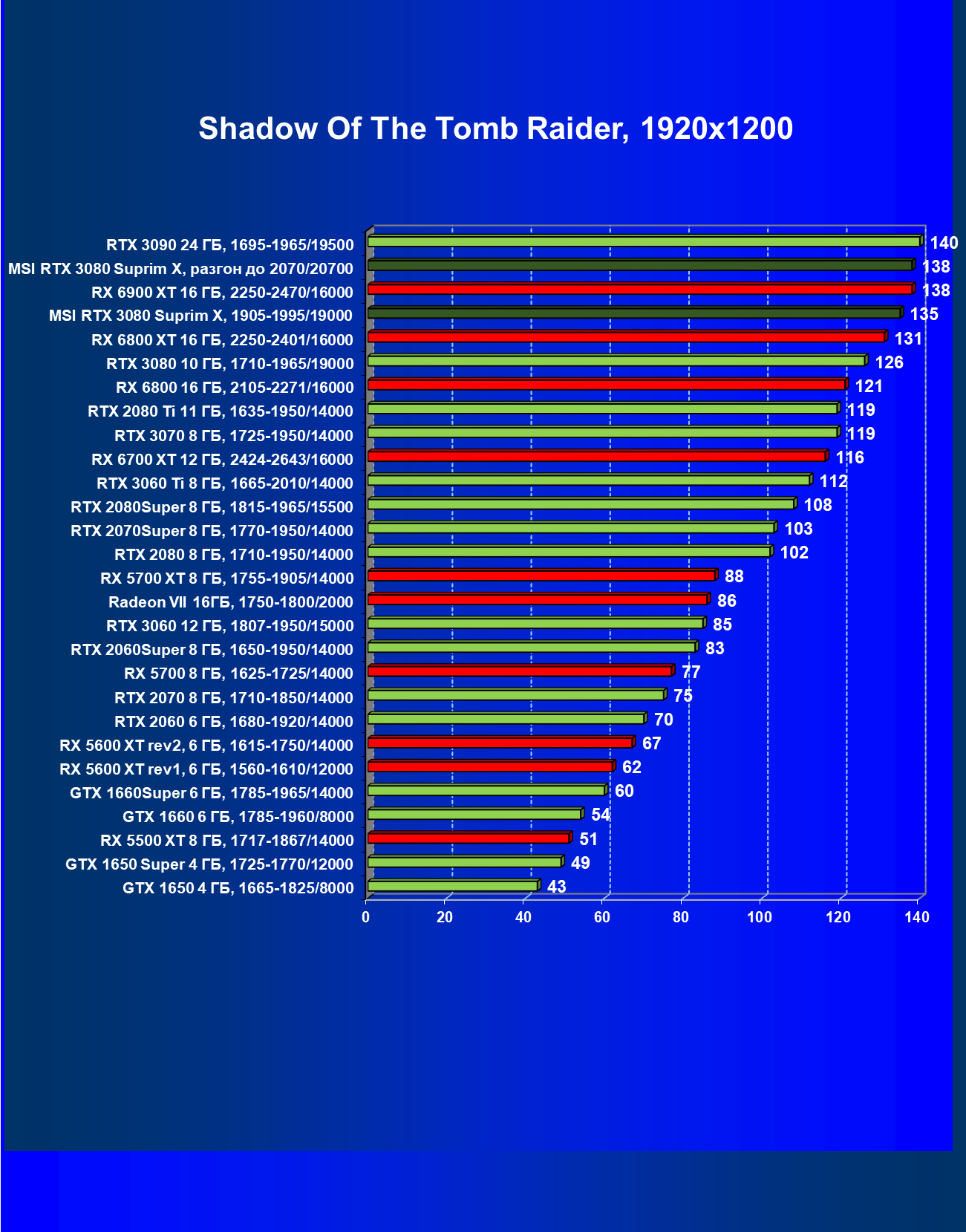 | 09 | MSI RTX 3080 Suprim X, 1905—1995/19000 | 12 | 255 | 210 000 |