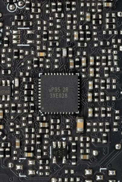 На оборотной стороне имеется еще один контроллер uS5650Q (uPI Semiconductor), отвечающий уже за мониторинг карты (отслеживание напряжений и температуры).
