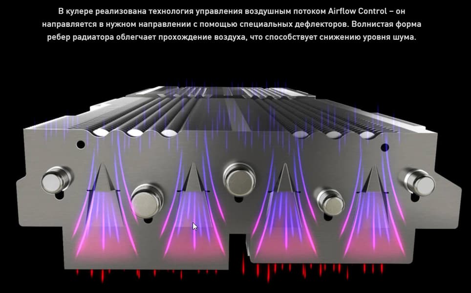 Поверх радиатора установлен кожух с тремя вентиляторами ∅95 мм типа Torx 4.0, имеющими особый дизайн лопастей (соединенных попарно) для усиления потока воздуха, направленного на радиатор.
