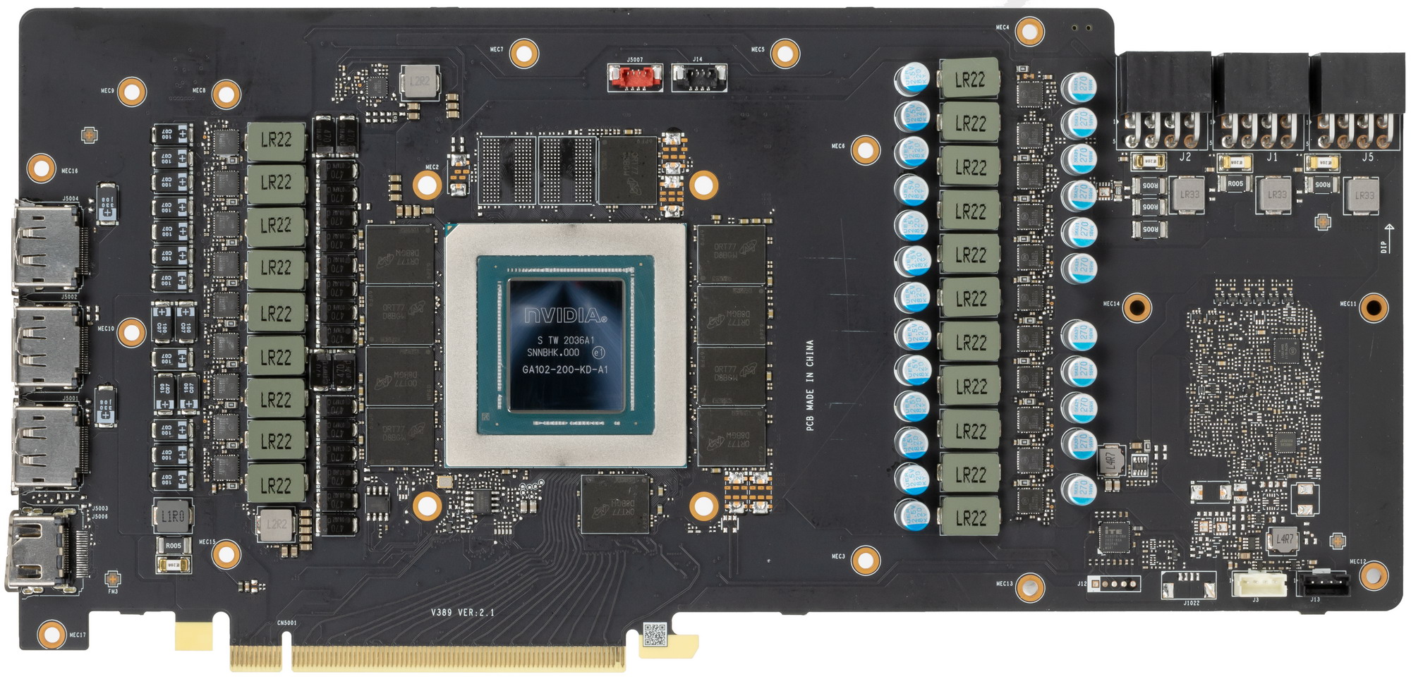 Напомню, что еще осенью 2020-го в Nvidia сделали два варианта дизайна PCB: для своих карт Founders Edition и для партнеров (платы без характерного выреза). Тем не менее, инженеры MSI не воспользовались готовым дизайном и создали собственную PCB, которая лишь в самых общих чертах базируется на эталонном дизайне.