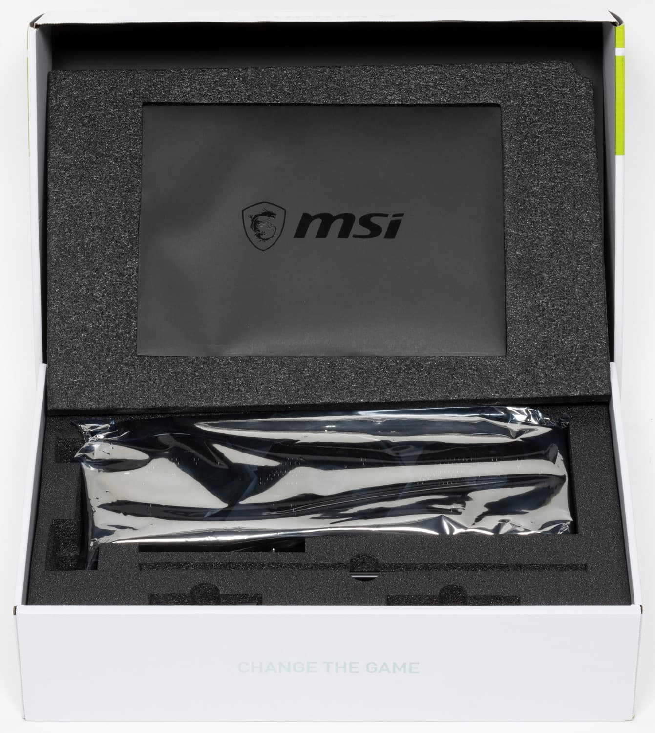 Если раньше компания MSI со своими массивными топовыми видеокартами поставляла металлические кронштейны, то в данном случае решено изменить вид подставки на штатив, упирающийся в дно корпуса.