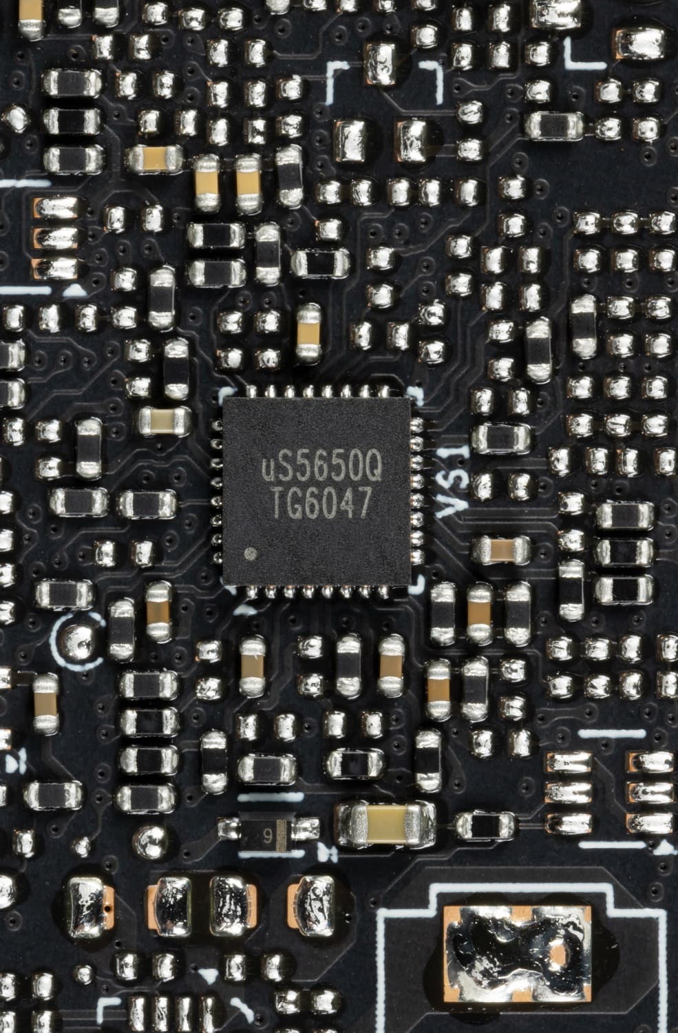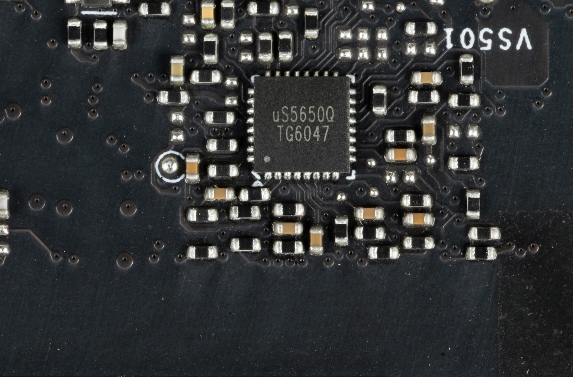 На оборотной стороне имеется еще один контроллер uS5650Q (uPI Semiconductor), отвечающий уже за мониторинг карты (отслеживание напряжений и температуры).