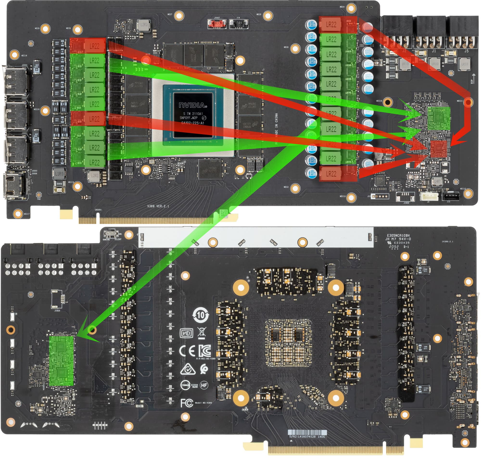 Напомню, что еще осенью 2020-го в Nvidia сделали два варианта дизайна PCB: для своих карт Founders Edition и для партнеров (платы без характерного выреза). При этом, инженеры MSI создали собственную PCB, которая лишь в самых общих чертах базируется на эталонном дизайне.