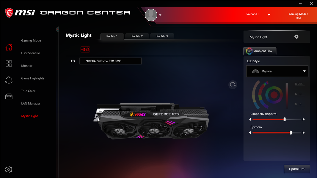 Управление работой карты обеспечивается с помощью хорошо известной фирменной утилиты MSI Dragon Center.