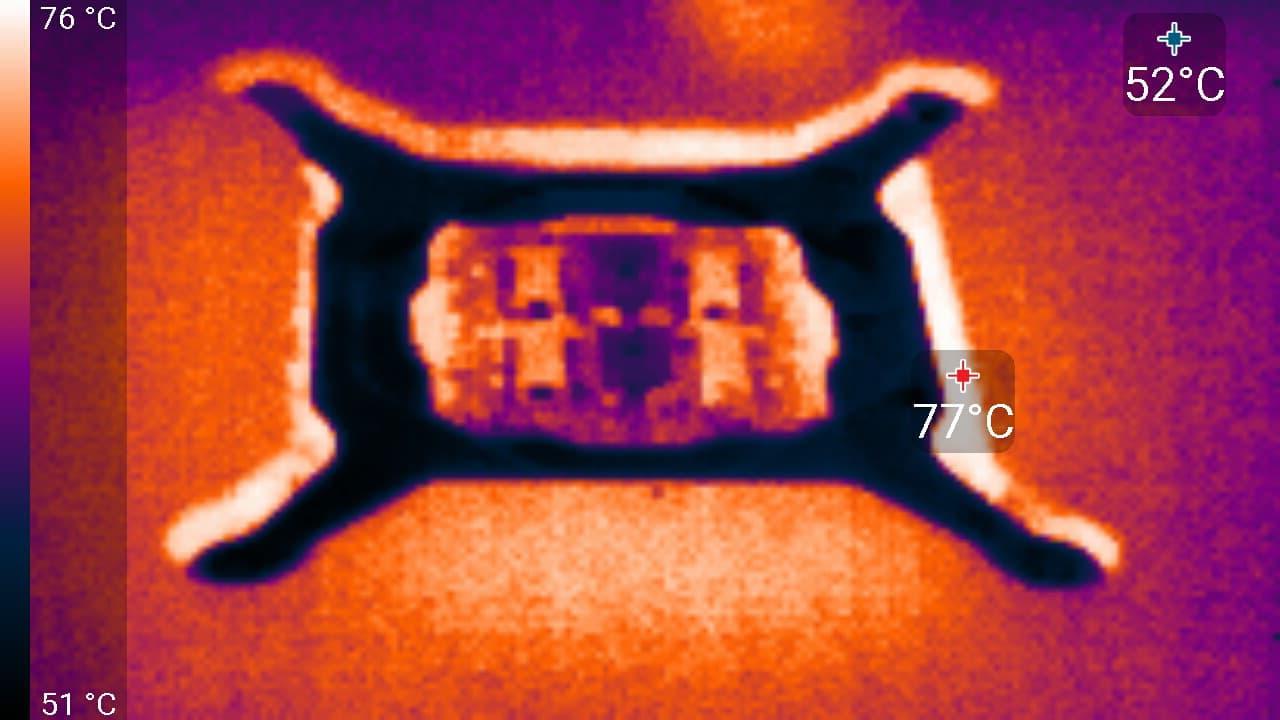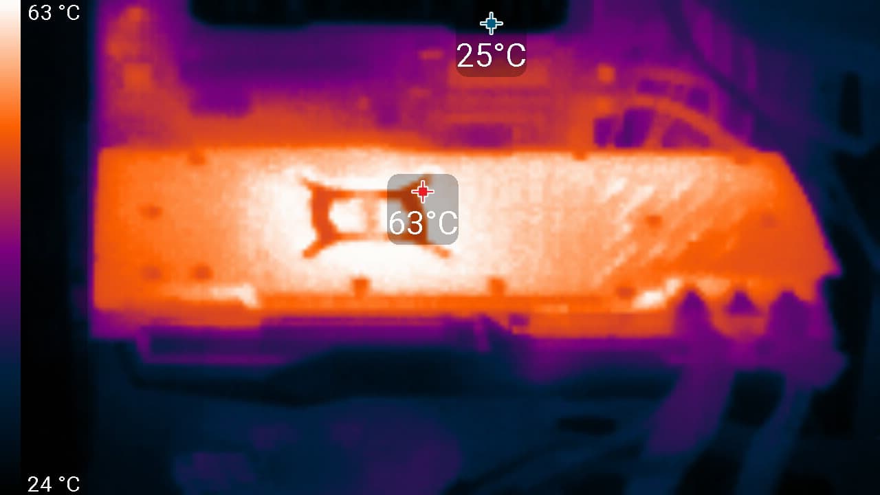 Максимальный нагрев наблюдался в центральной части PCB, в основном около ядра. Ранее я говорил, что стоит обратить особое внимание на разъемы питания у тех плат, у которых их было всего два. Здесь отчетливо видно, что действительно есть смысл распределить подвод питания на три 8-контактных разъема.