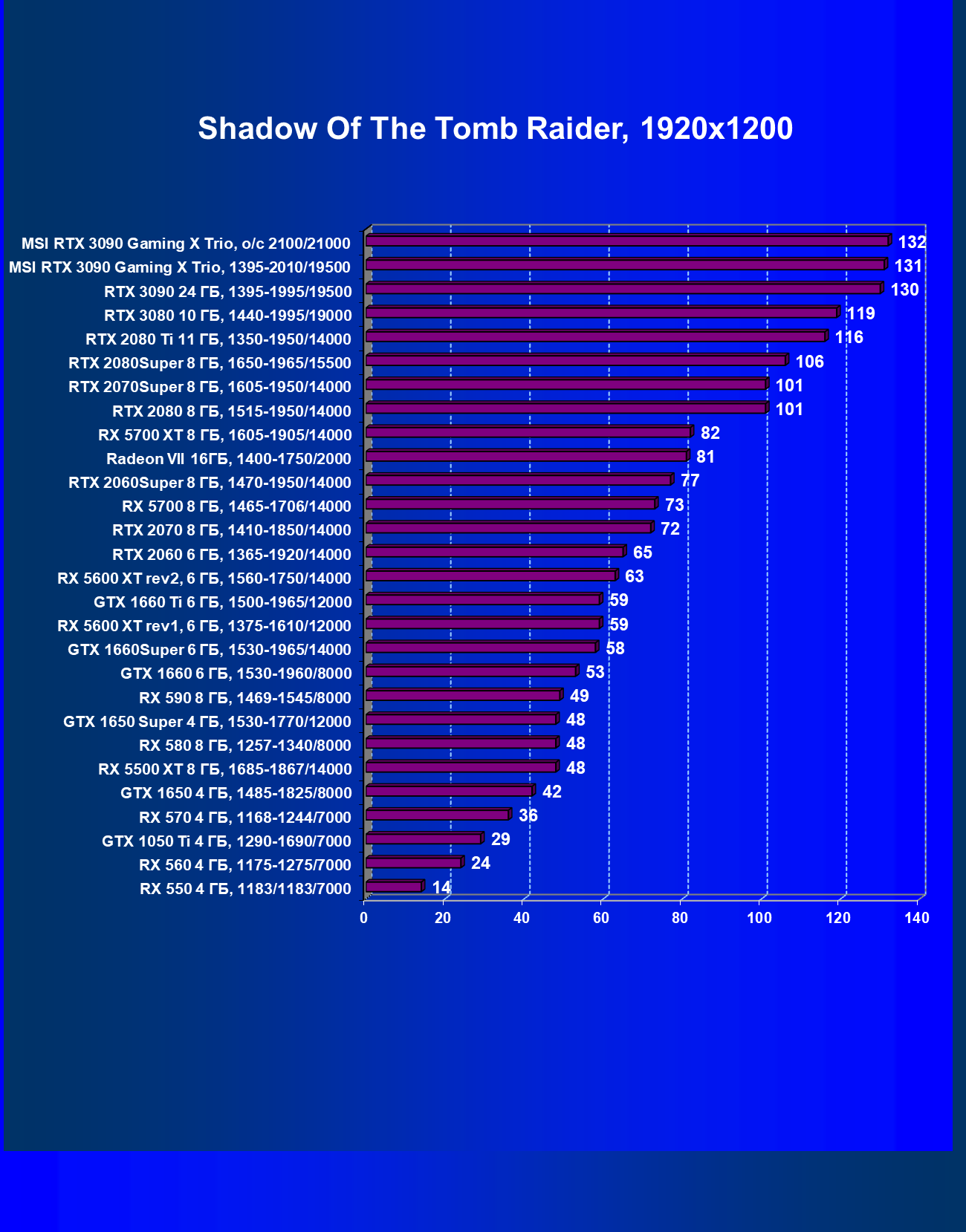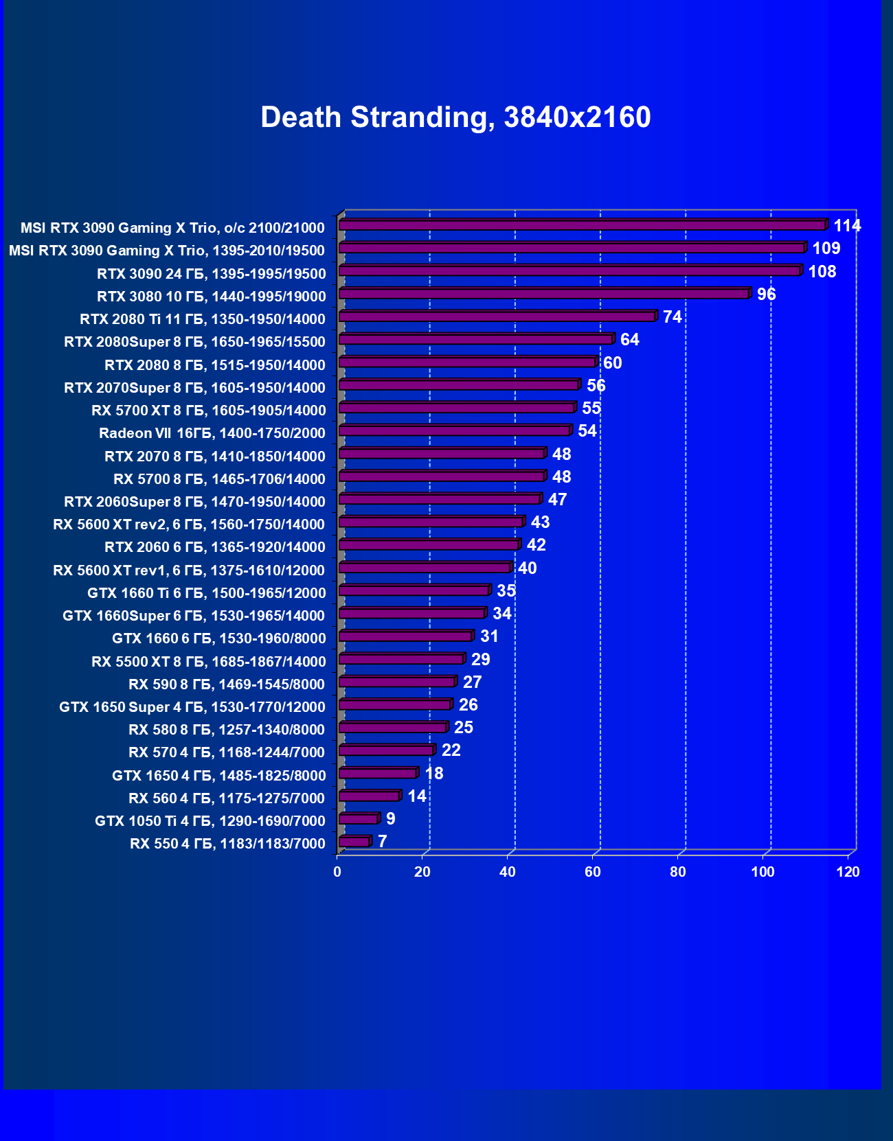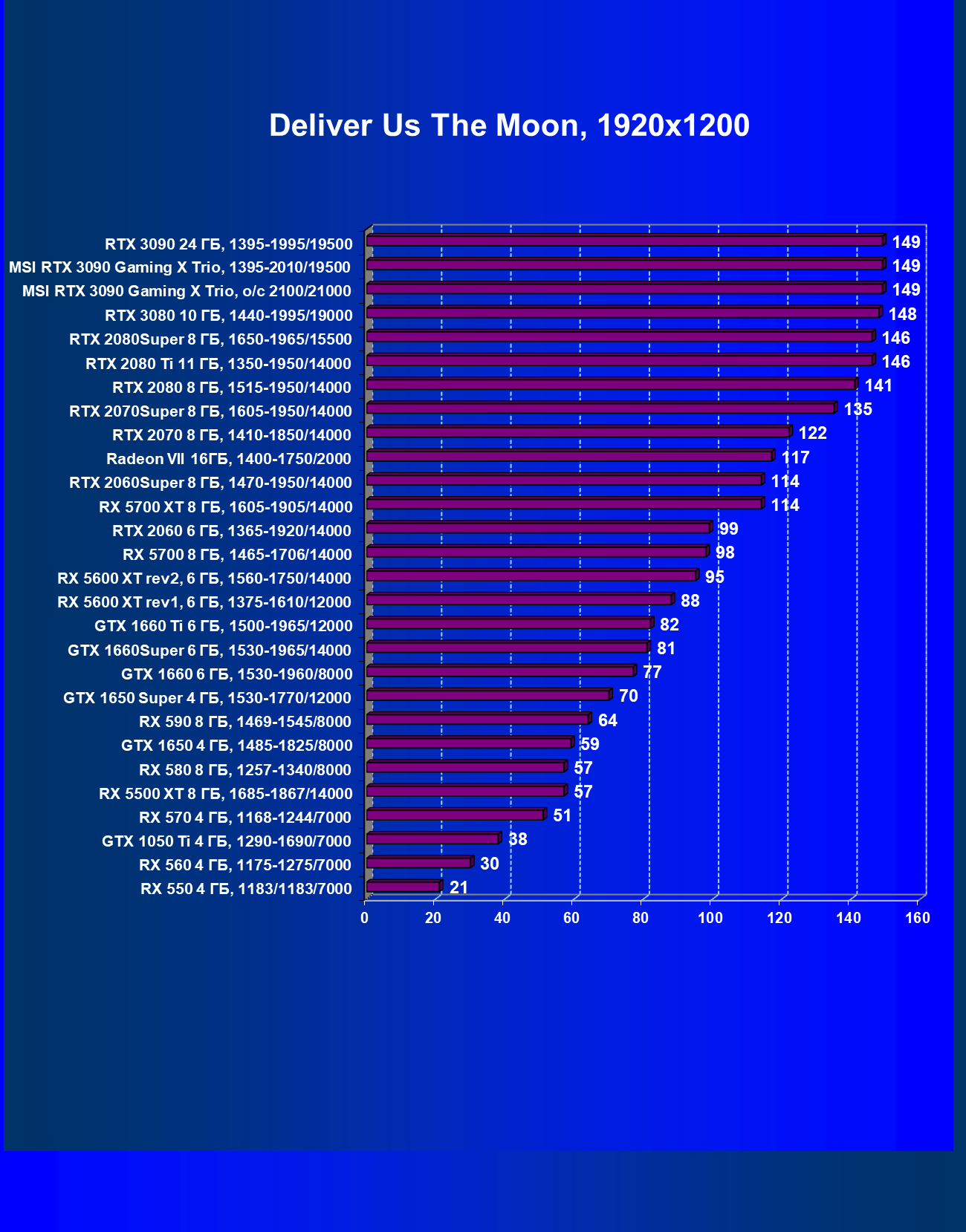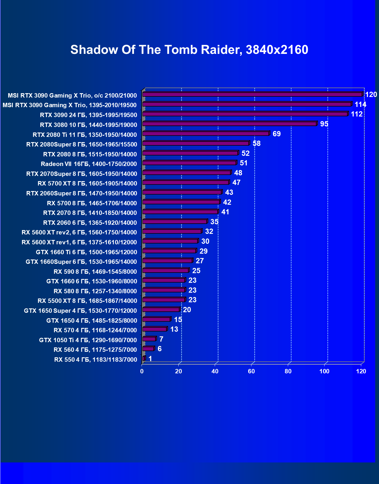 | 09 | MSI RTX 3090 Gaming X Trio, разгон до 2100/21000 | 353 | 5294 | 150 000 |