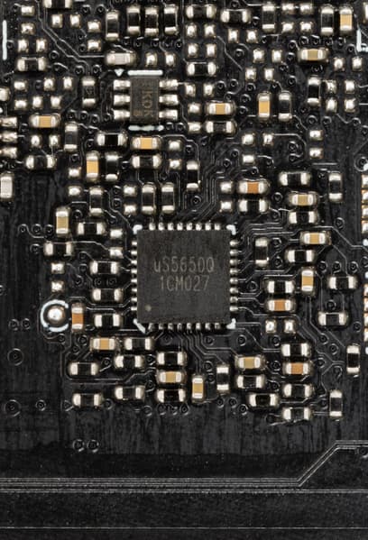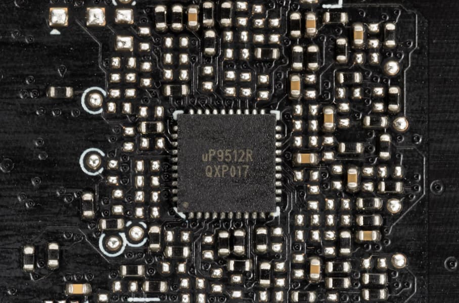 Также имеются два контроллера uS5650Q (uPI Semiconductor), отвечающие за мониторинг карты (отслеживание напряжений и температуры).