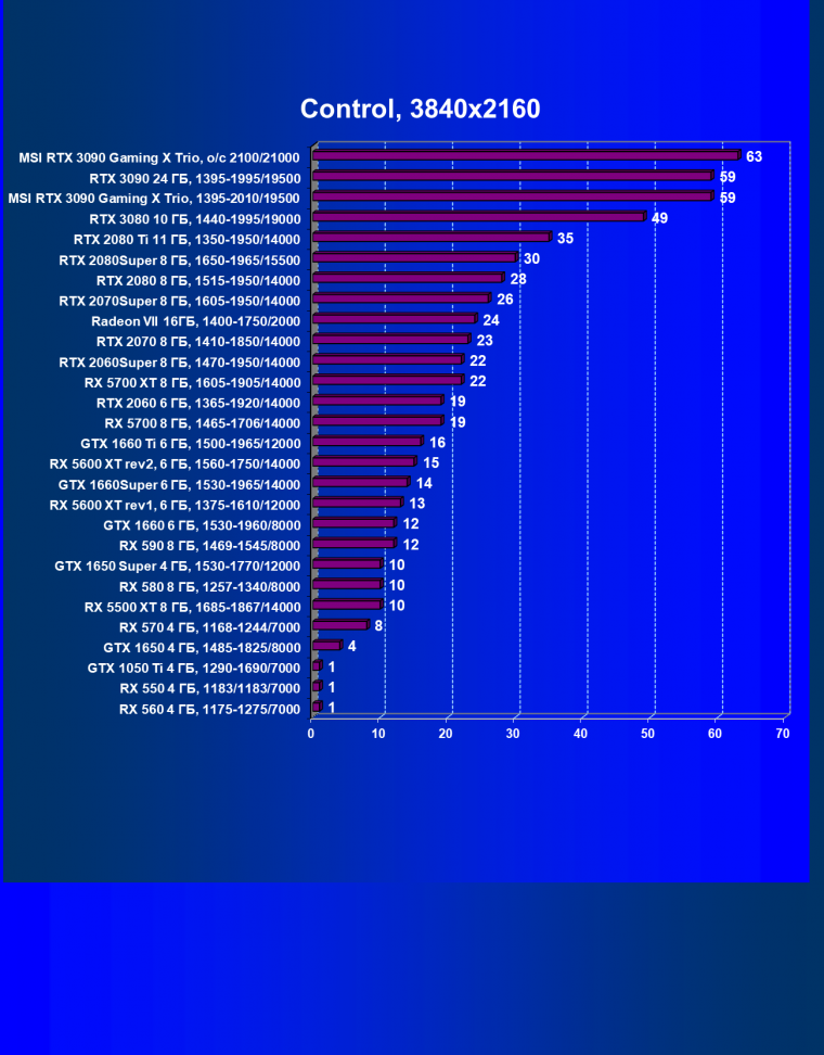 Даже нет смысла комментировать: это самый быстрый на сегодня видеоускоритель. Он прекрасно подходит для разрешения 4К при максимальных настройках графики, а в ряде игр с использованием технологии Nvidia DLSS подходит и для разрешения 8К.