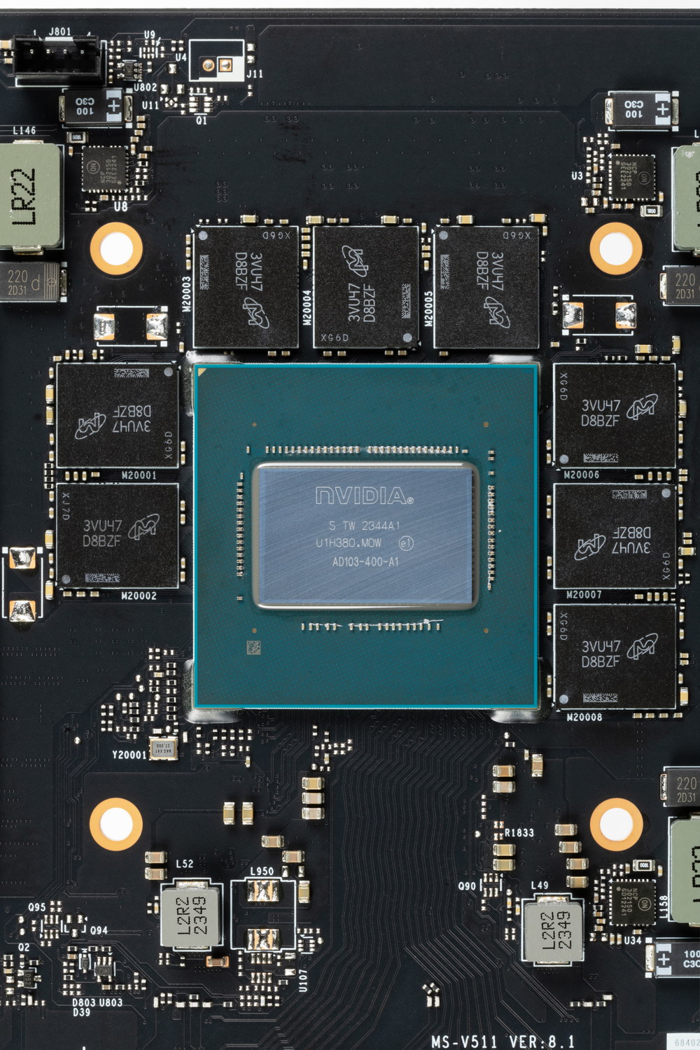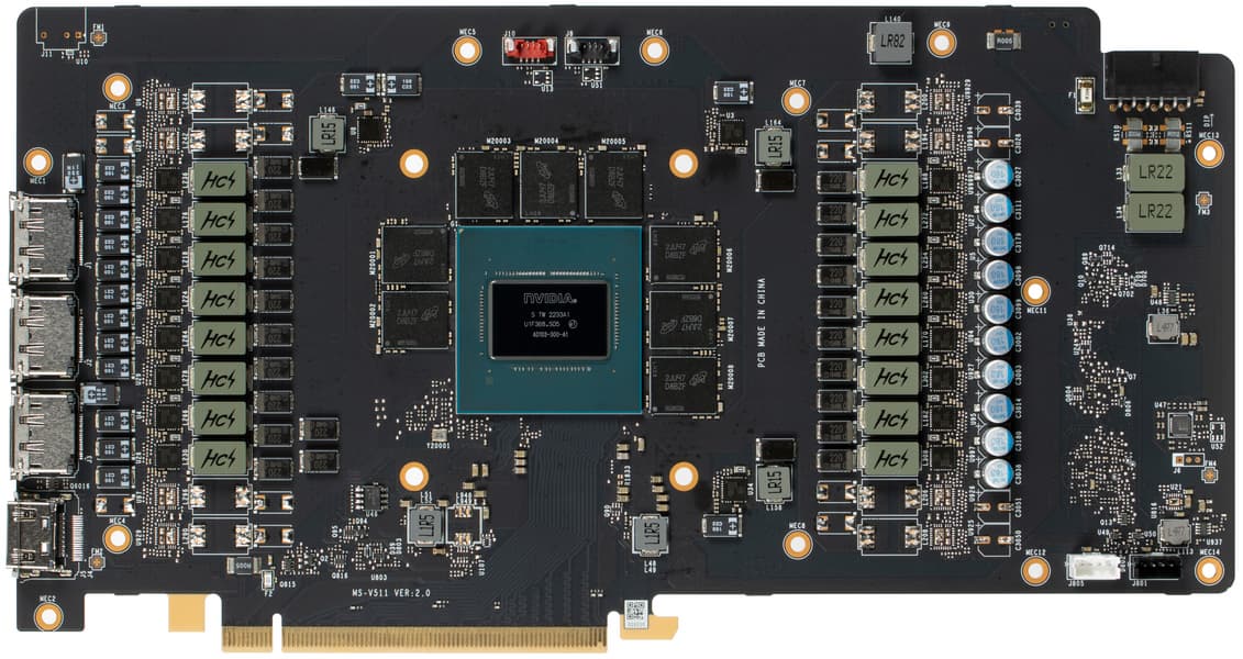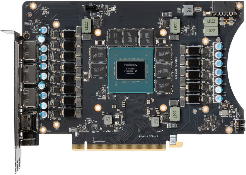 Карта имеет 16 ГБ памяти GDDR6X SDRAM, размещенной в 8 микросхемах по 16 Гбит на лицевой стороне PCB. Микросхемы памяти Micron (MT61K512M32KPA-24 / D8BZF) рассчитаны на номинальную частоту работы в 3000 (24000) МГц.