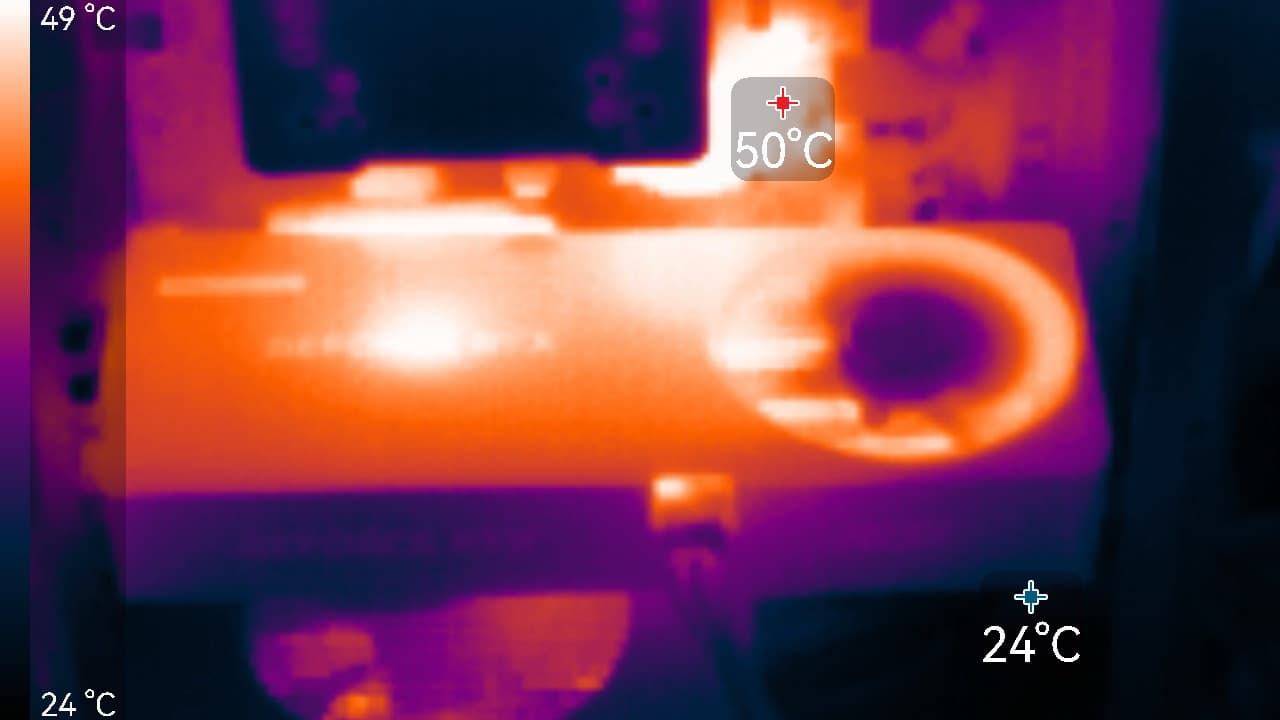 Максимальный нагрев наблюдался в центральной части PCB.