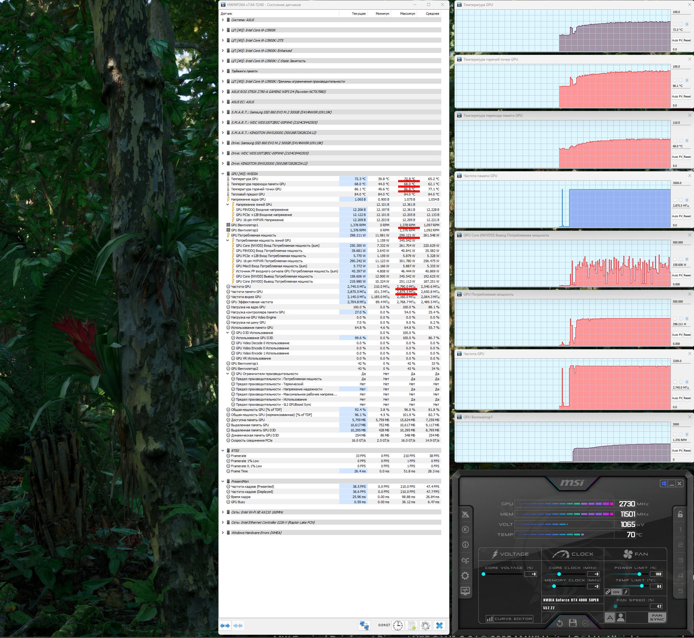 Энергопотребление карты MSI в тестах доходило до 299 Вт (пик 345 Вт).