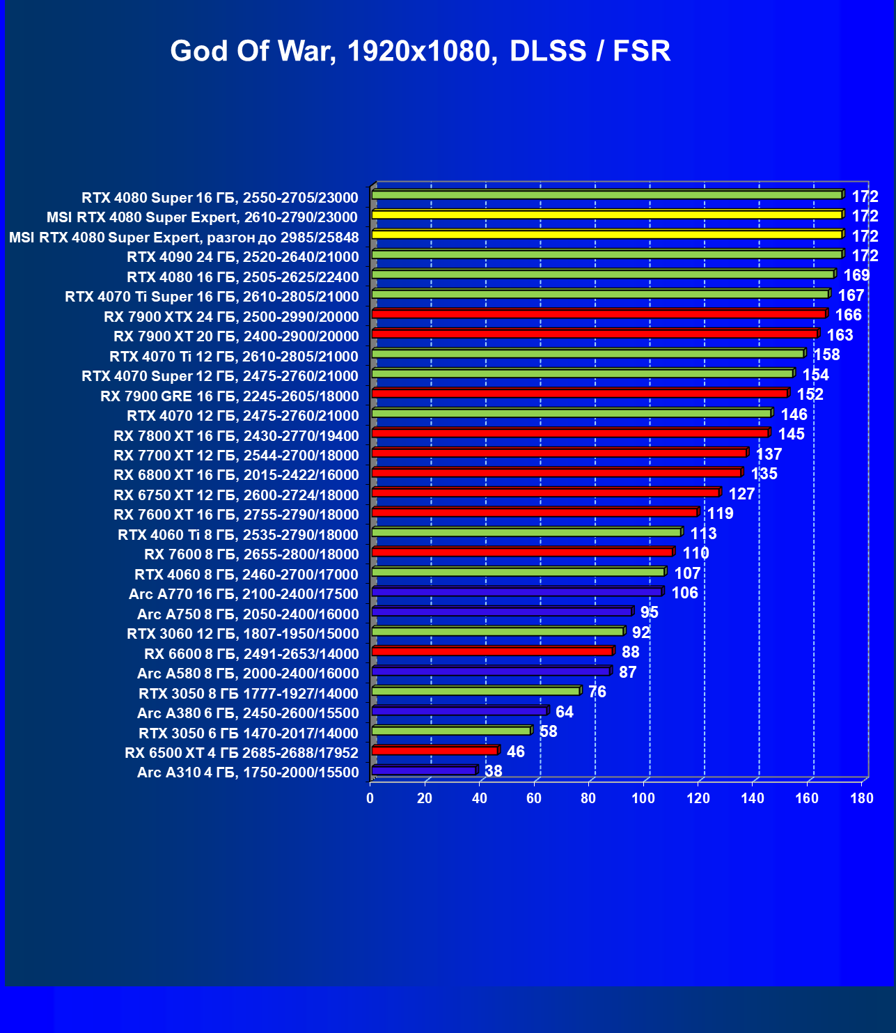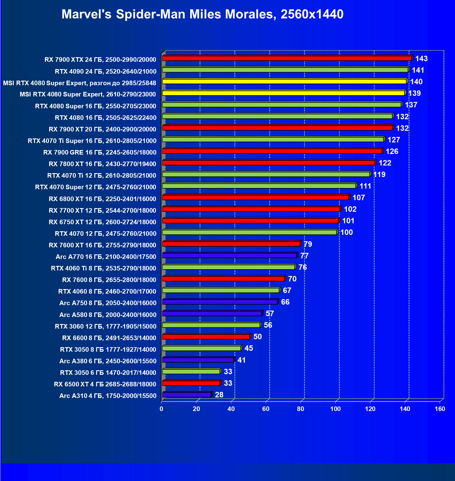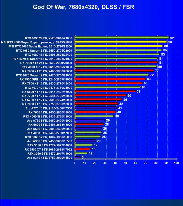 Понятно, что у более дешевых карт Radeon RX 7900 XT/XTX рейтинг выше, но опять акцентируем внимание на том, что в данном случае мы говорим о классических играх без трассировки лучей и технологий масштабирования.