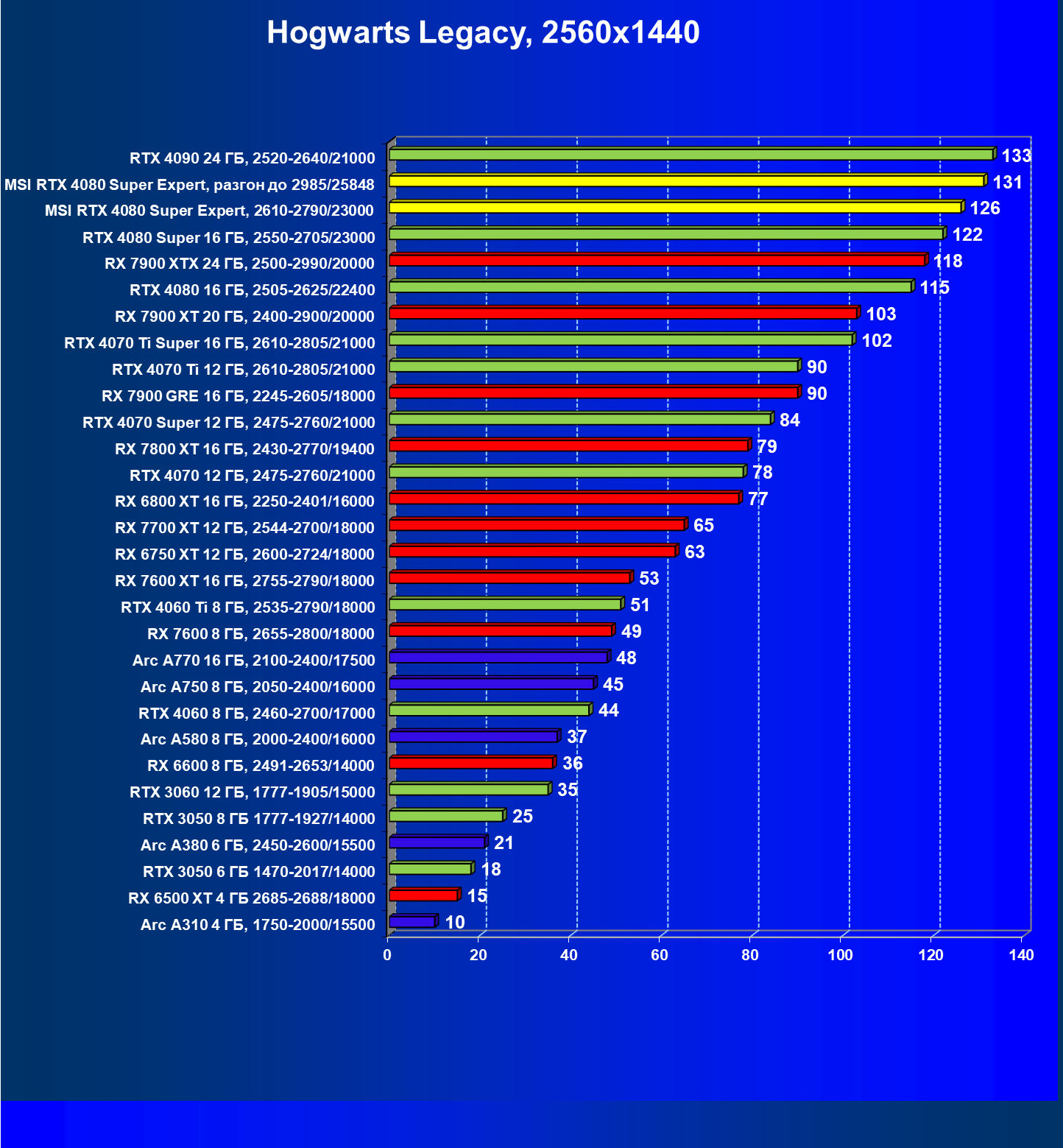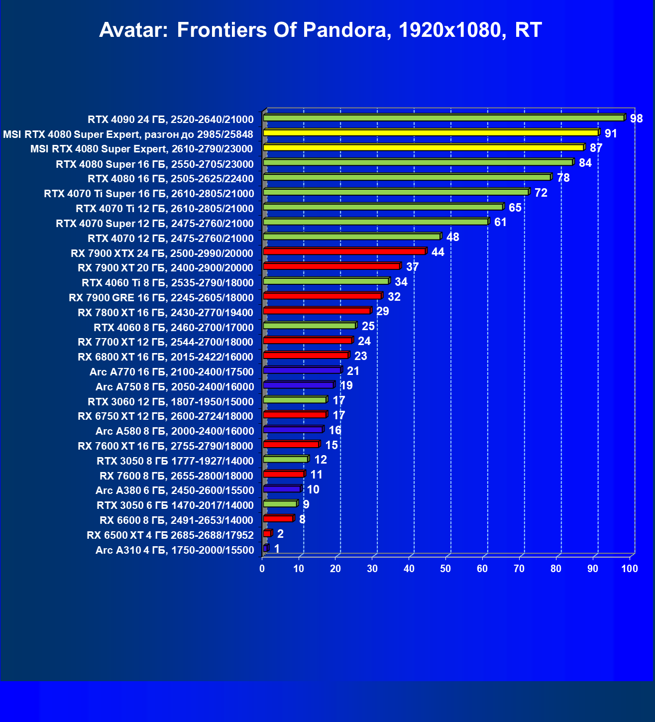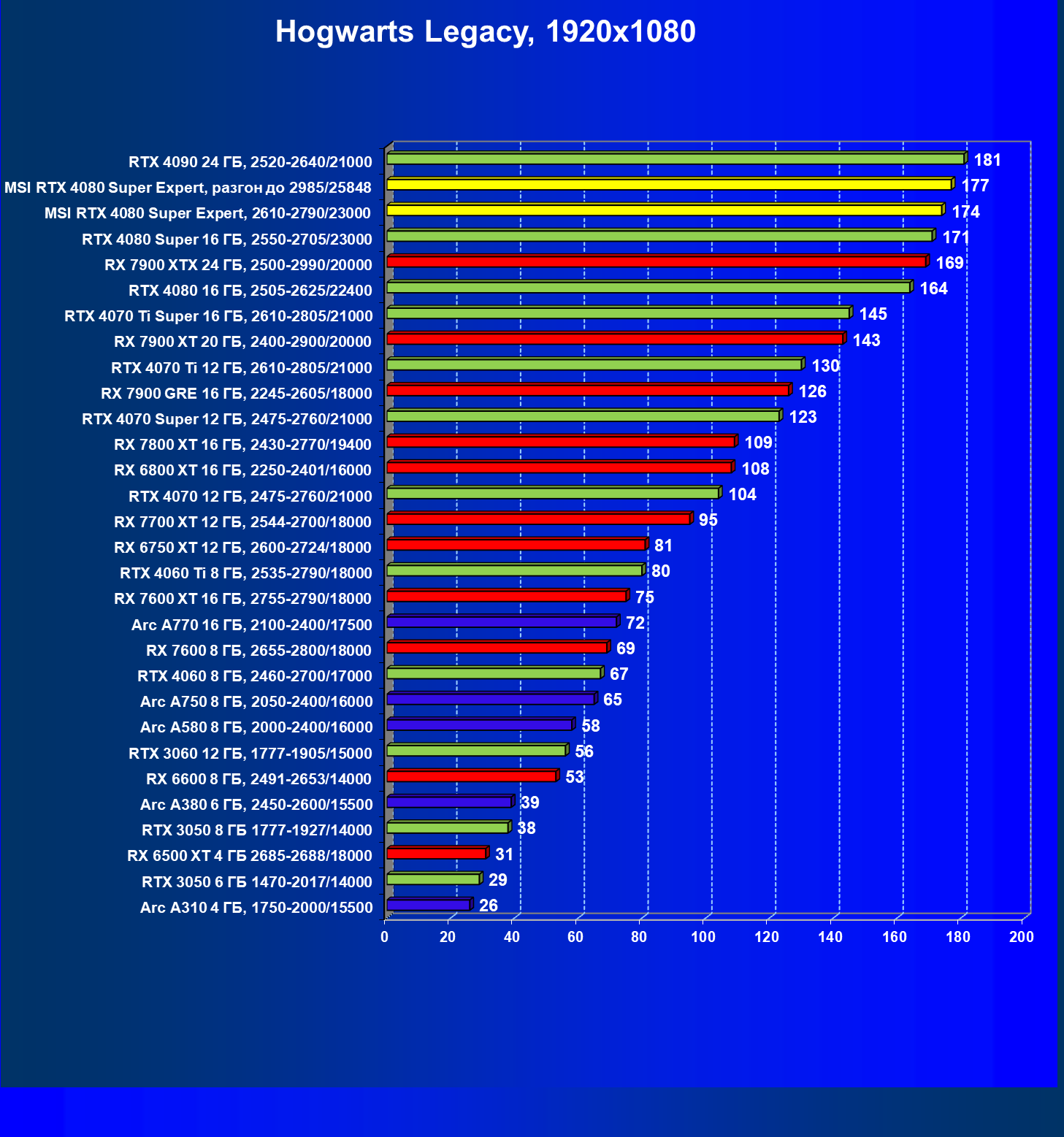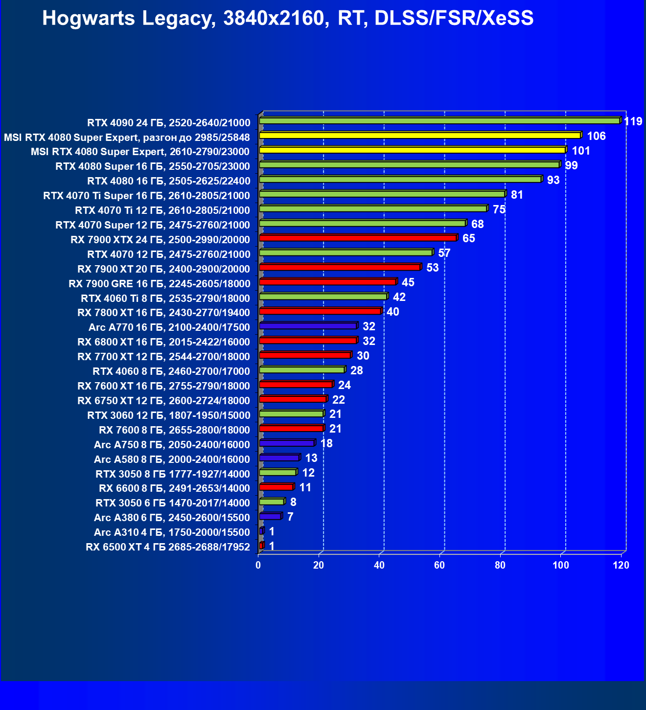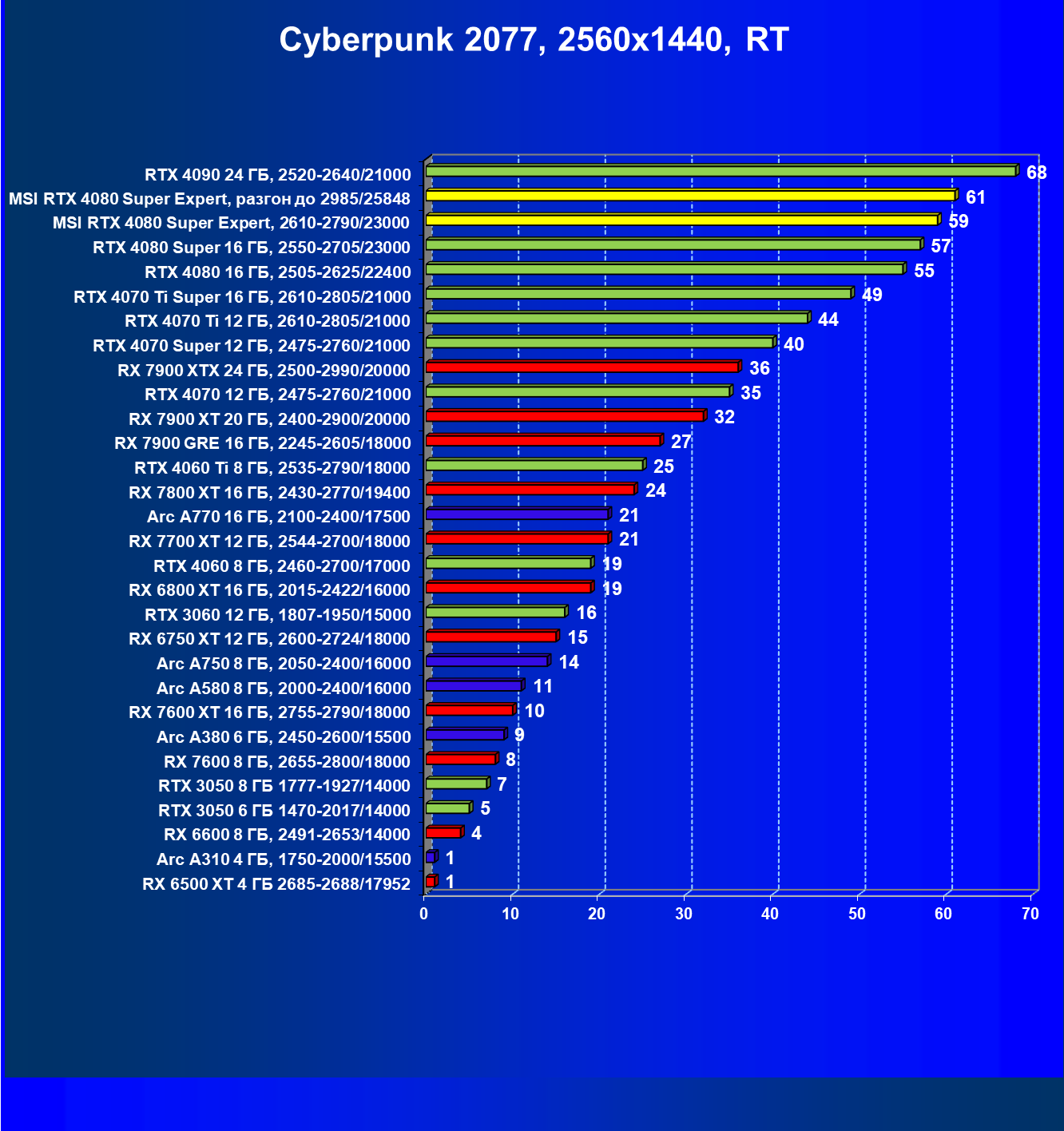 | 25 | MSI RTX 4080 Super Expert, 2610—2790/23000 | 219 | 2890 | 132 000 |
