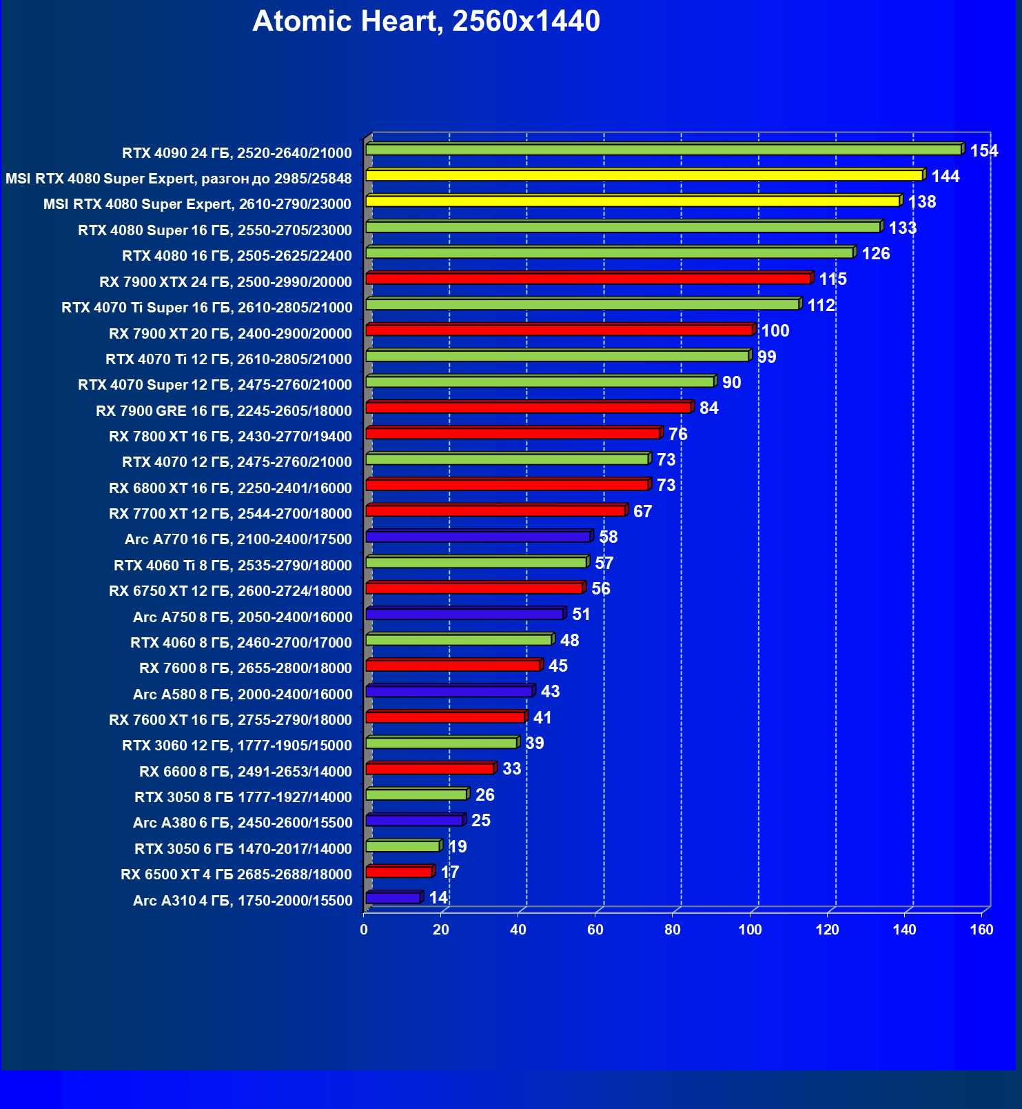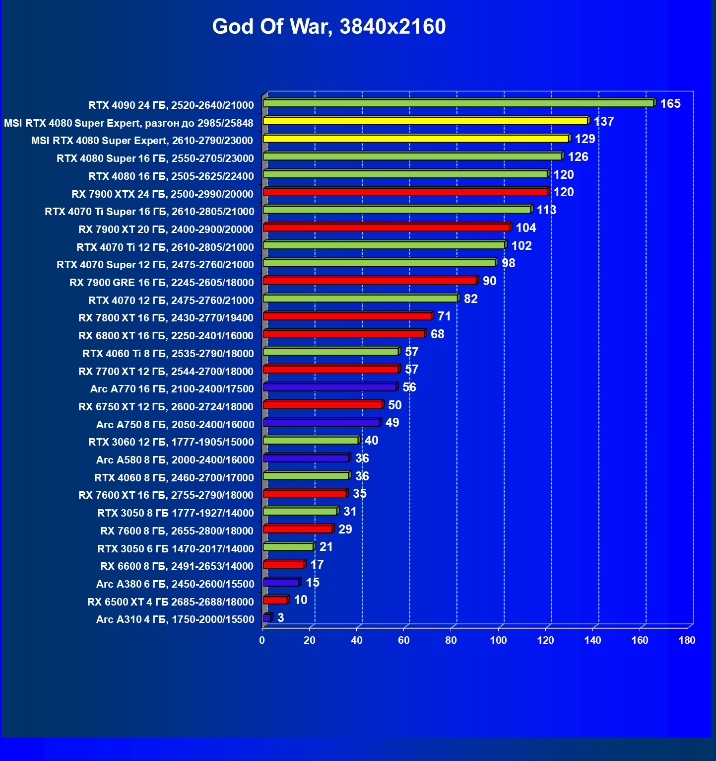 | 02 | MSI RTX 4080 Super Expert, разгон до 2985/25848 | 3024 | 229 | 132 000 |