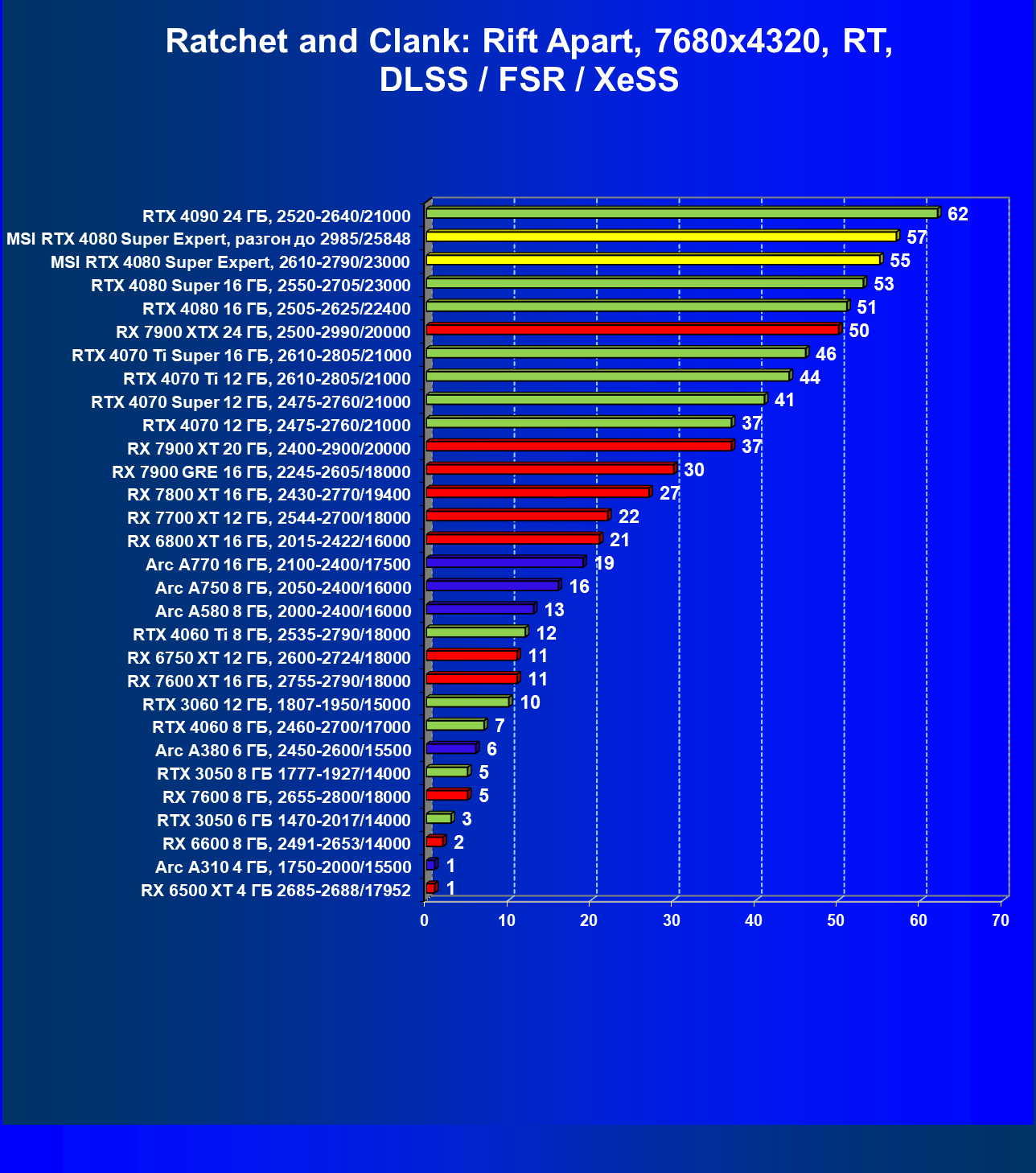 - Вариант рейтинга iXBT.com с включением RT/DLSS/FSR/XeSS