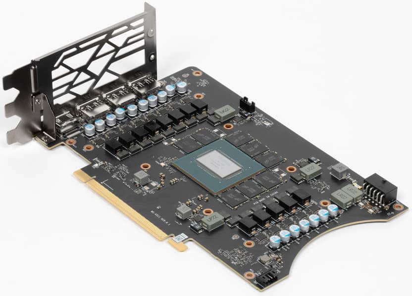 Также стоит отметить, что у платы обычные 4 видеовыхода: один HDMI 2.1 и три DP 1.4a. GPU позволяет выводить картинку одновременно на 4 монитора.