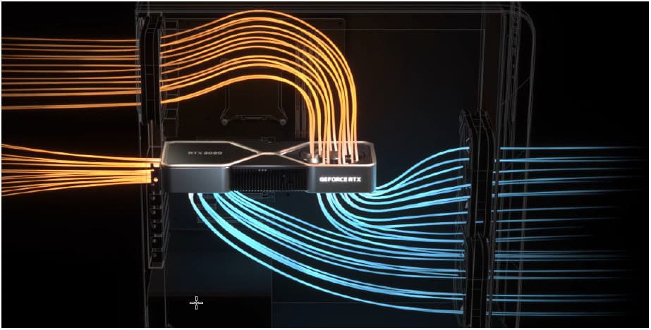 Система охлаждения является главной фишкой всей серии Expert. Давайте вспомним, как работают референсные СО на старших картах Nvidia из серии Founders Edition со времен GeForce RTX 30.
