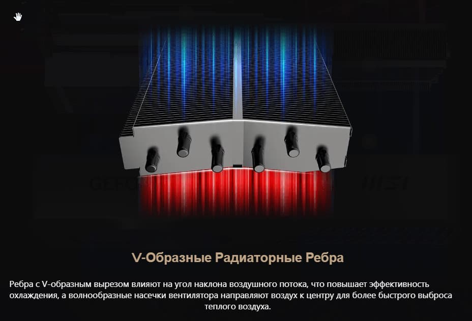 А теперь посмотрим, что нам предлагают инженеры MSI. Как видите, они применили концепцию кулера Nvidia, но при этом внесли очень существенные коррективы.