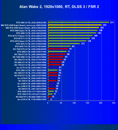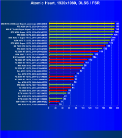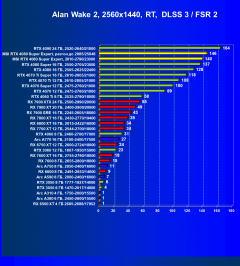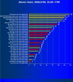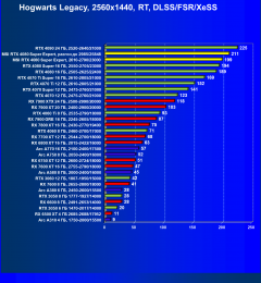 Результаты тестов со включенной аппаратной трассировкой лучей и/или DLSS/FSR/XeSS в разрешениях 1920×1080, 2560×1440 и 3840×2160