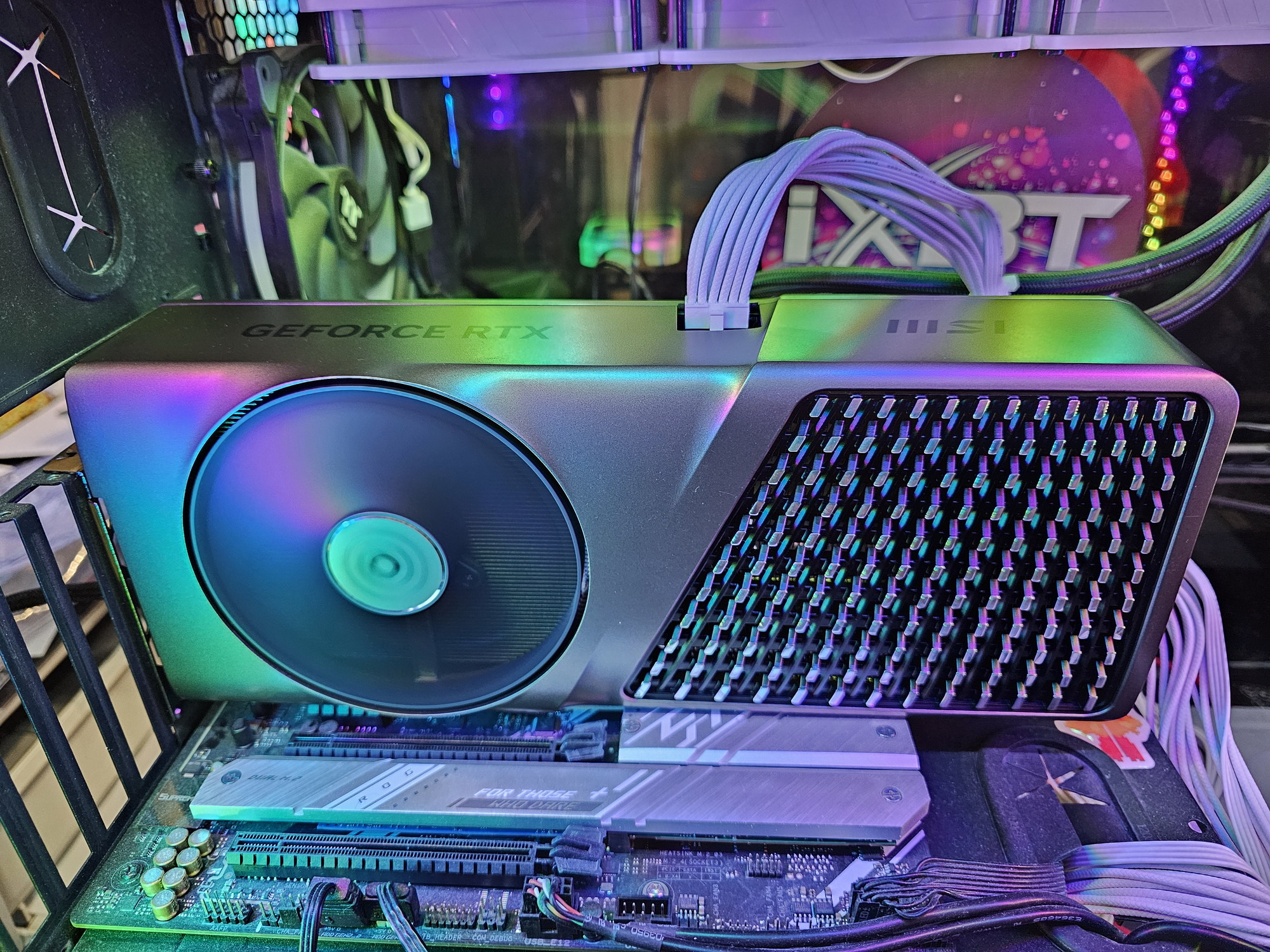 Питание на карту MSI подается через 16-контактный разъем питания стандарта PCIe 5.0 (12VHPWR).
