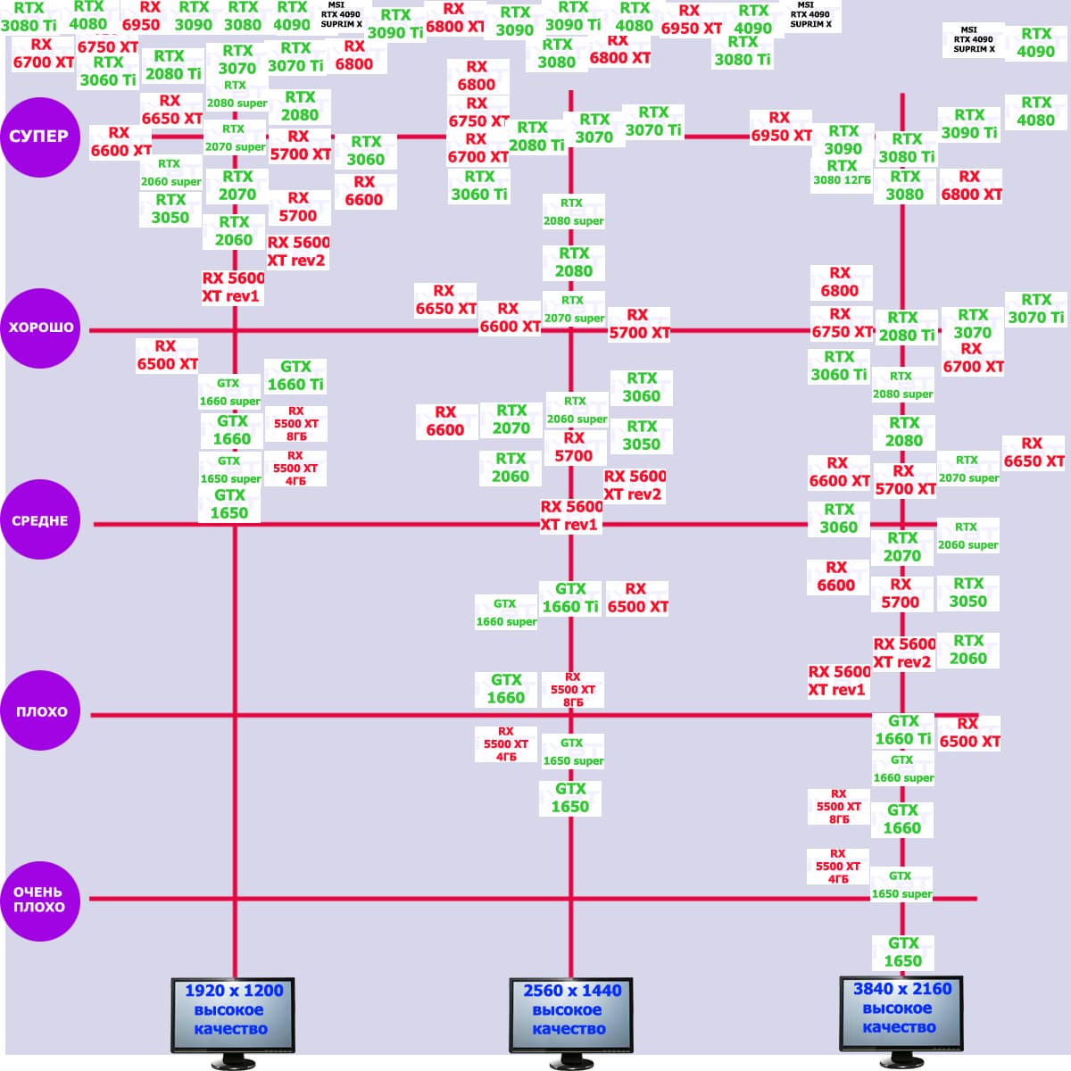 | 16 | RX 6900 XT 16 ГБ, 2015—2470/16000 | 83 | 619 | 75 000 |