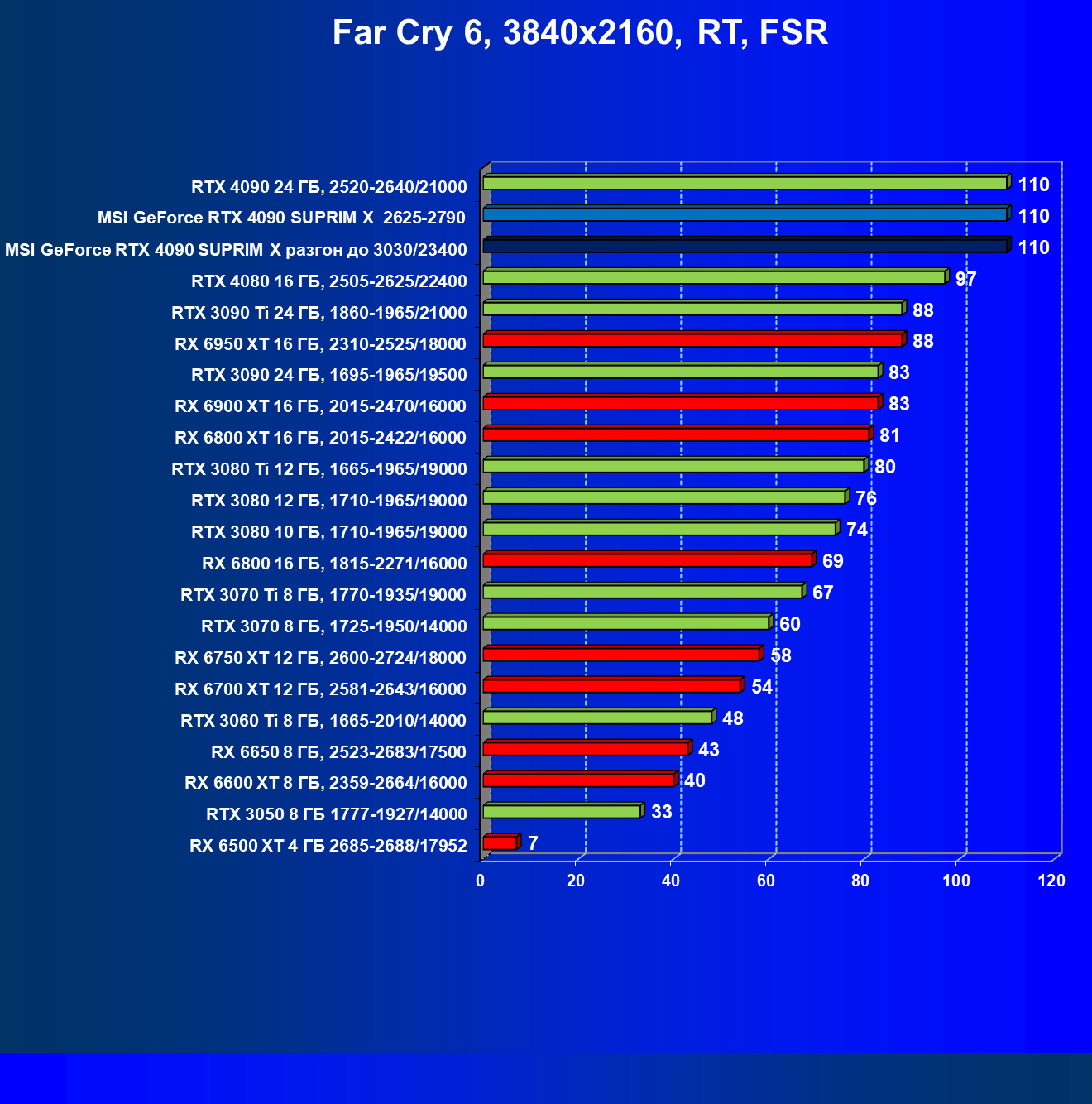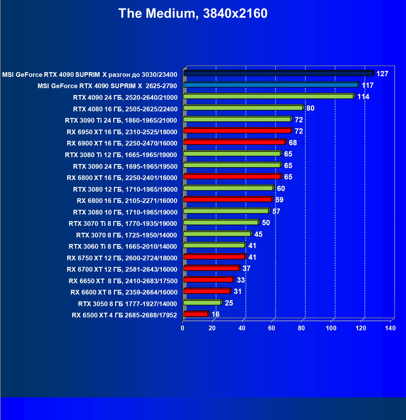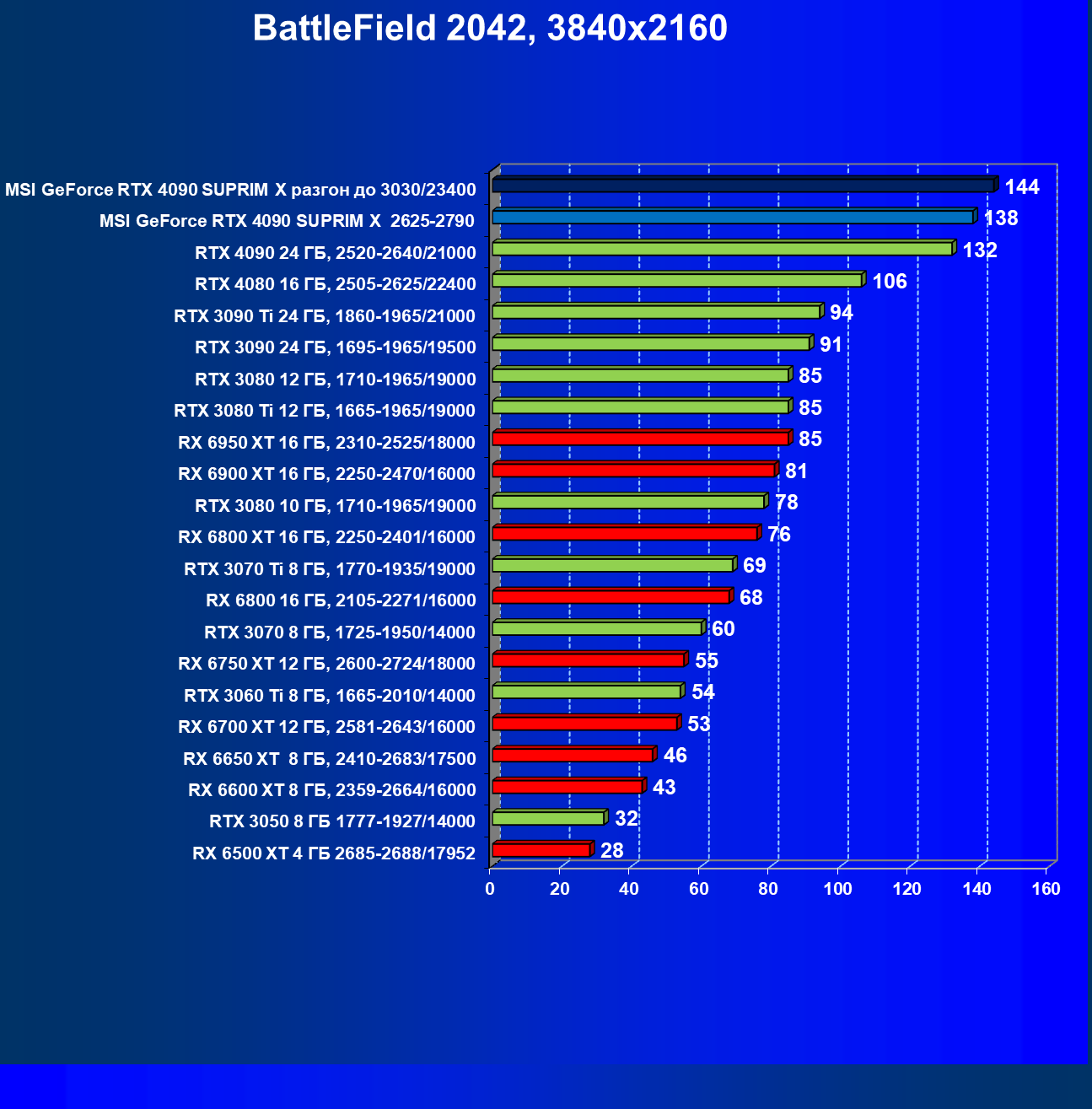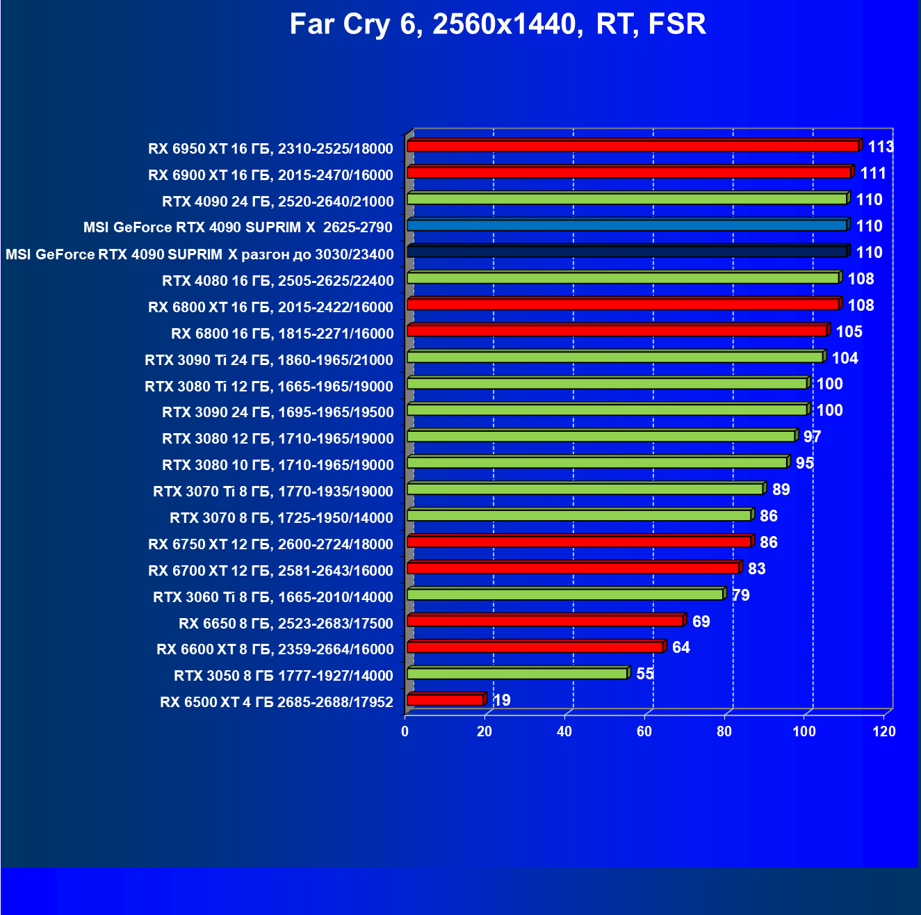 | 01 | MSI GeForce RTX 4090 Suprim Х 24 ГБ, разгон до 2925/23400 | 592 | 33 | 180 000 |