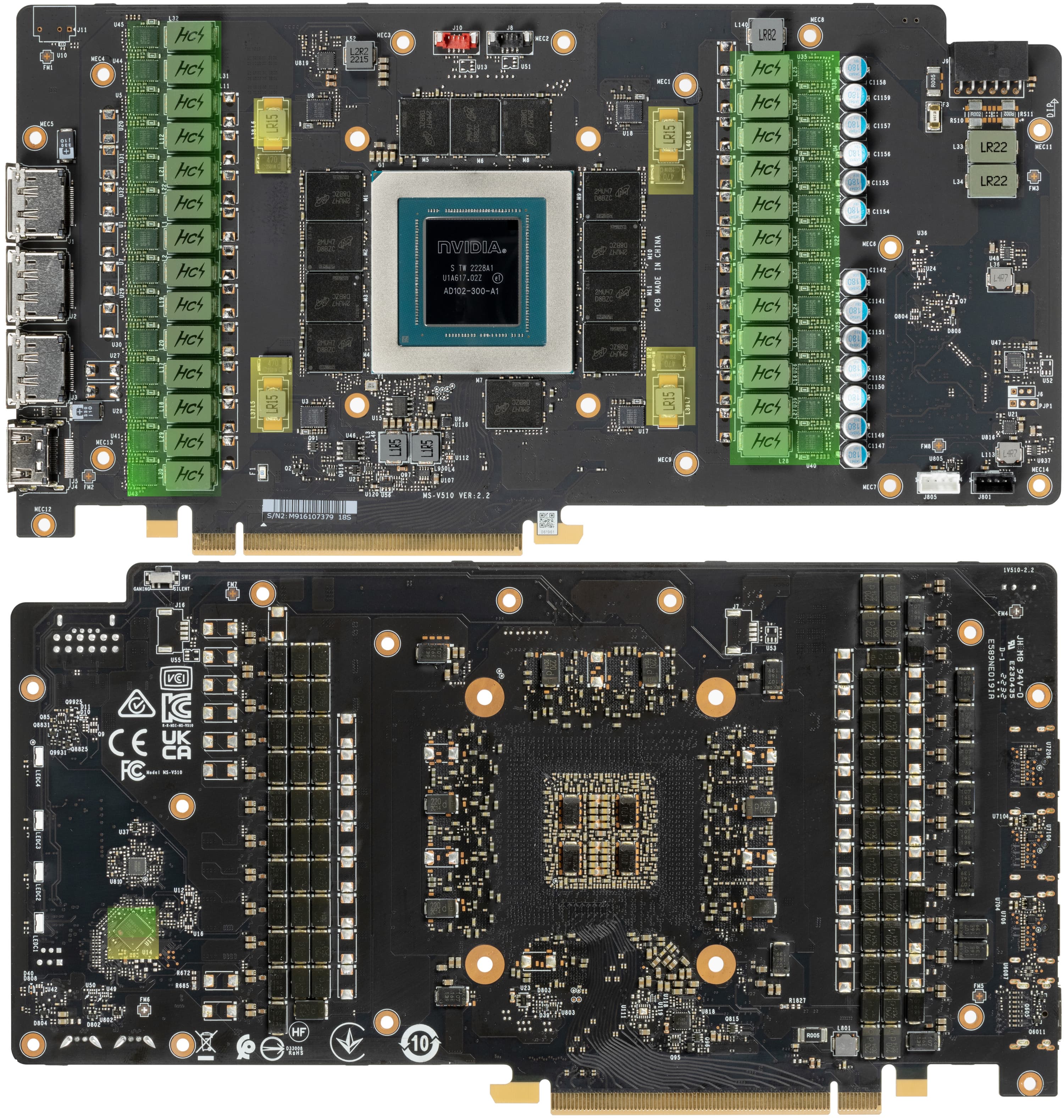 Карта имеет 24 ГБ памяти GDDR6X SDRAM, размещенной в 12 микросхемах по 16 Гбит на лицевой стороне PCB. Микросхемы памяти Micron (GDDR6X, MT61K512M32KPA-21 / D8BZC) рассчитаны на номинальную частоту работы в 2625 (21000) МГц.
