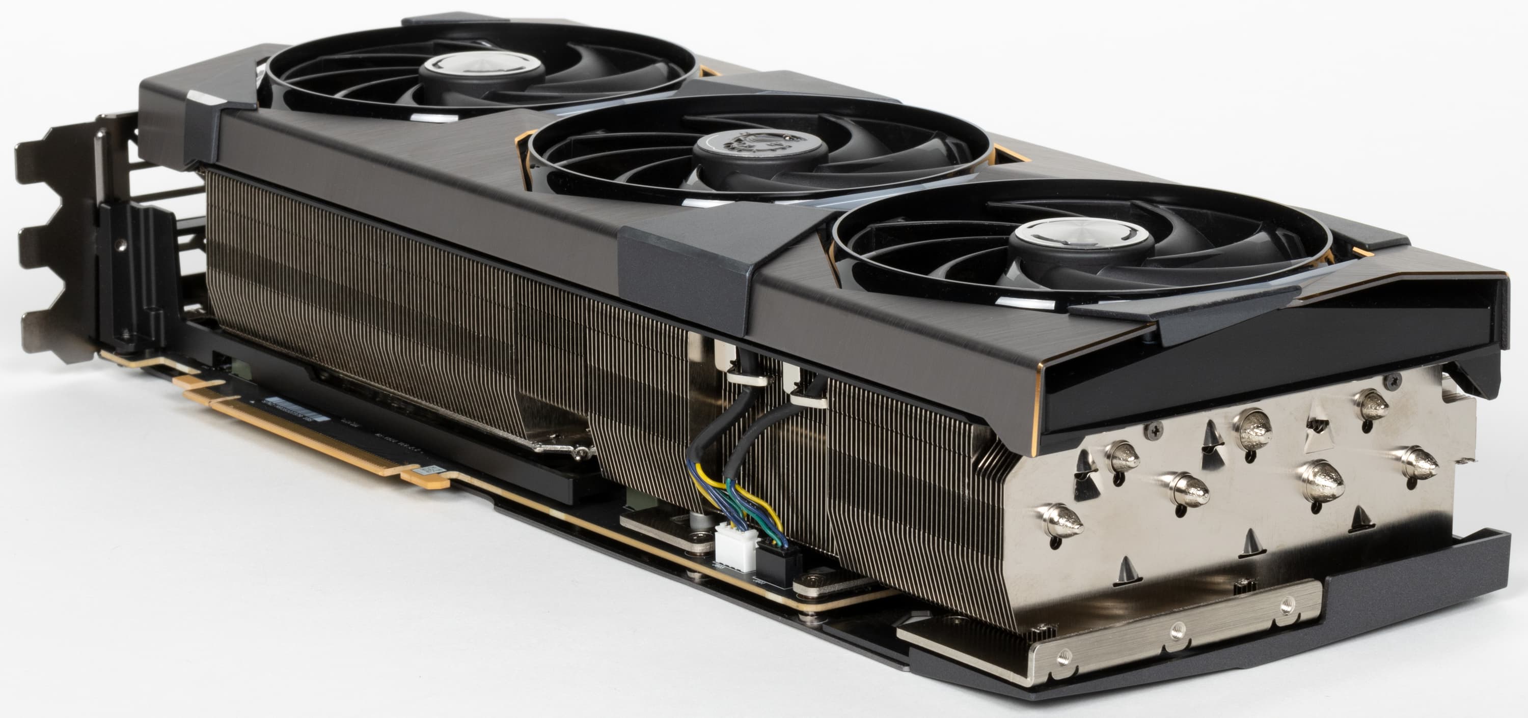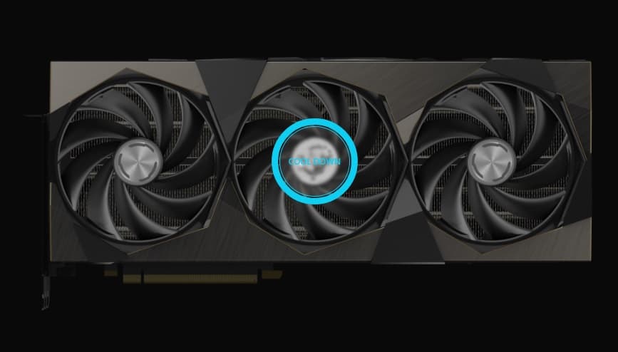 Новую систему охлаждения Tri Frozr 3S с испарительной камерой дополняет установленный поверх радиатора кожух с тремя вентиляторами Torx Fan 5.0 ∅90 мм (они имеют конструктивные усовершенствования, что, по словам производителя, приводит к увеличению расхода воздуха на 23% по сравнению с некими стандартными вентиляторами).