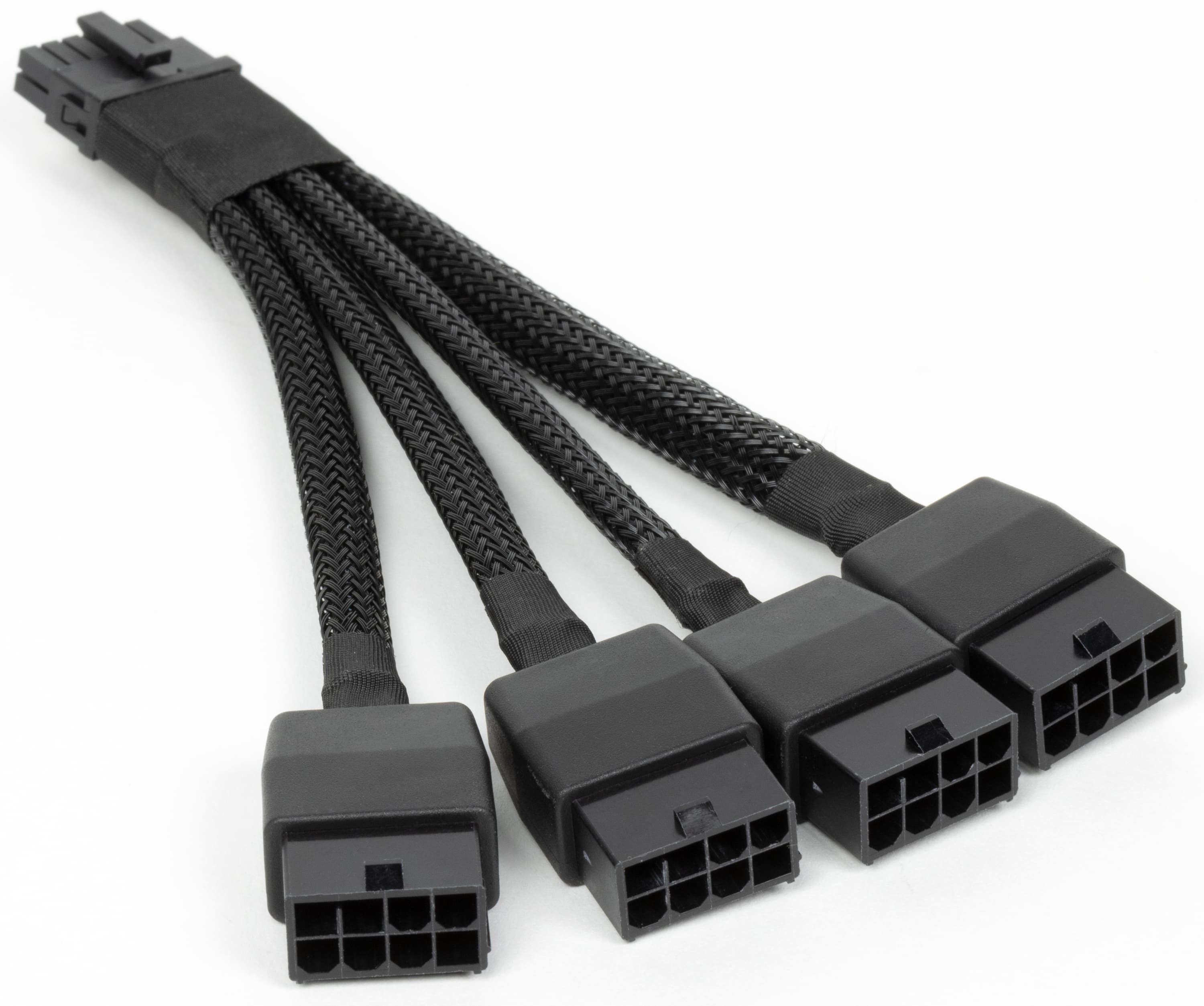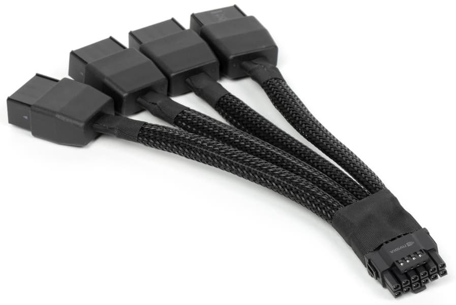 Несмотря на, казалось бы, очень толстые оплетенные кабели, данный адаптер крайне не рекомендуется сгибать в месте оплетки у 16-контактного разъема, ибо на входе в этот разъем по стандарту PCIe 5.0 находится микросхема, задействующая два управляющих контакта в разъеме.