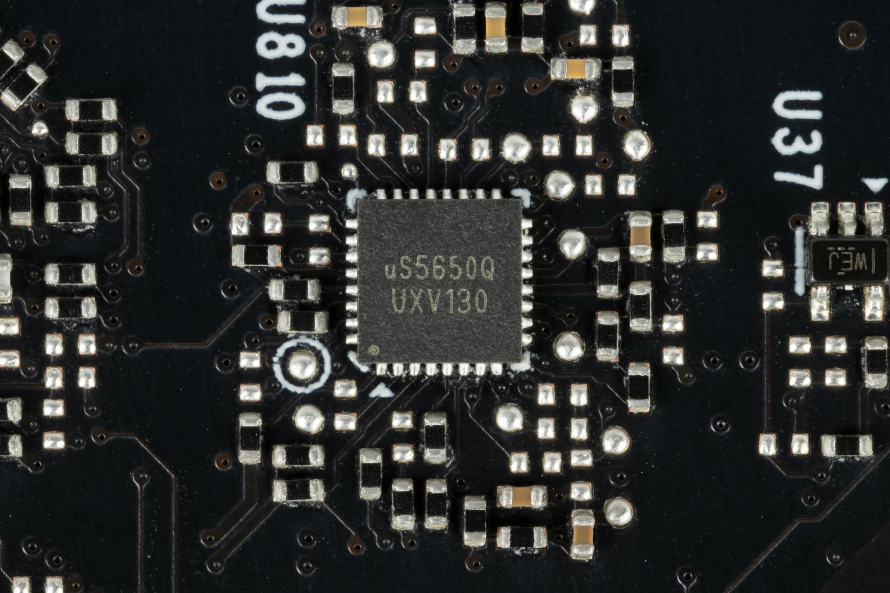 Также на тыльной стороне карты имеется контроллер uS5650Q (uPI Semi), который отвечает за мониторинг карты (отслеживание напряжений и температуры).