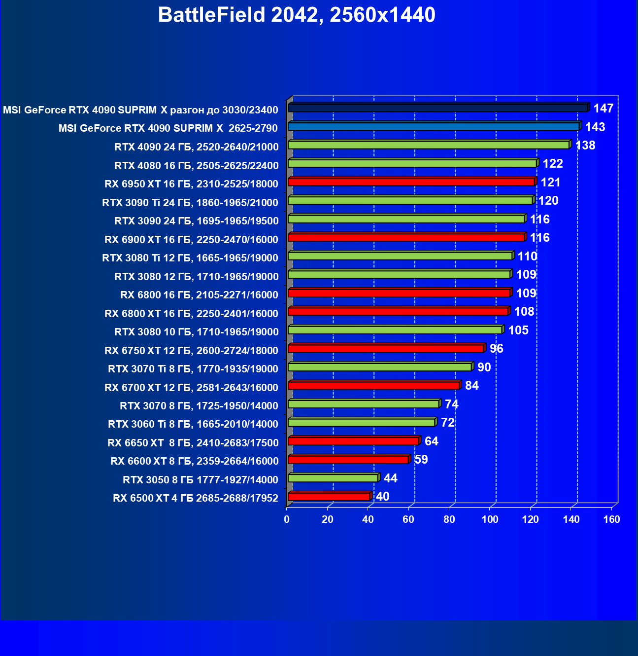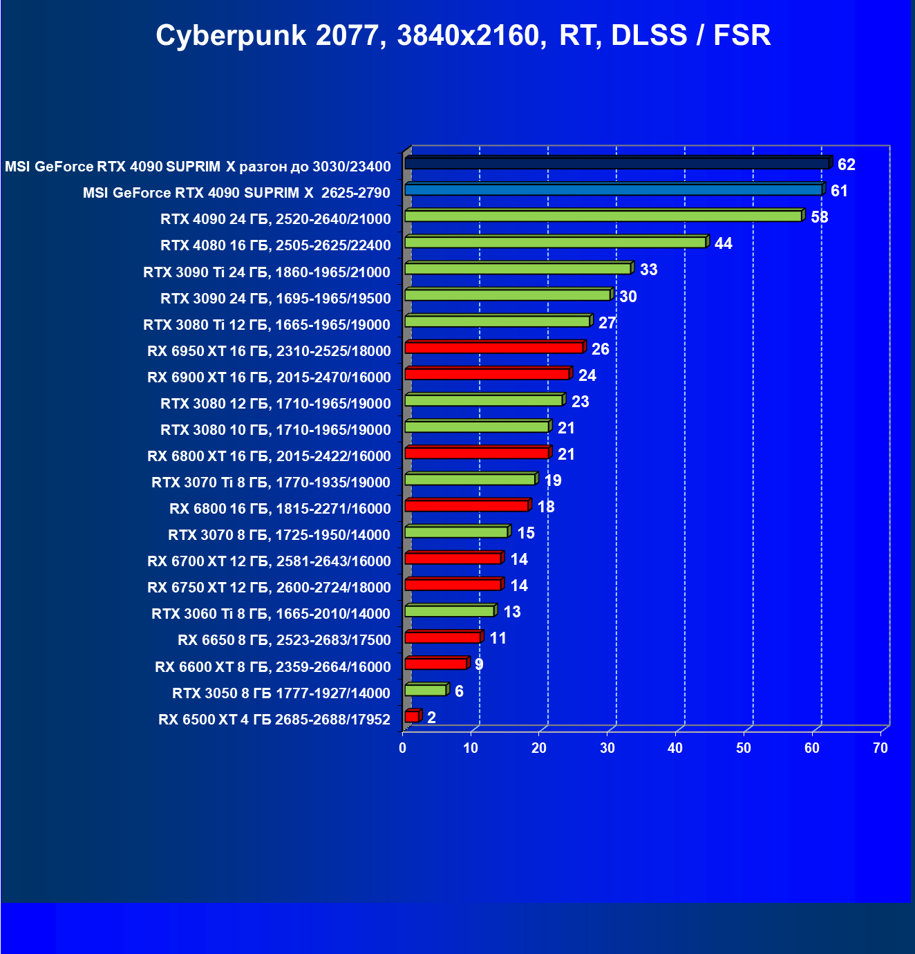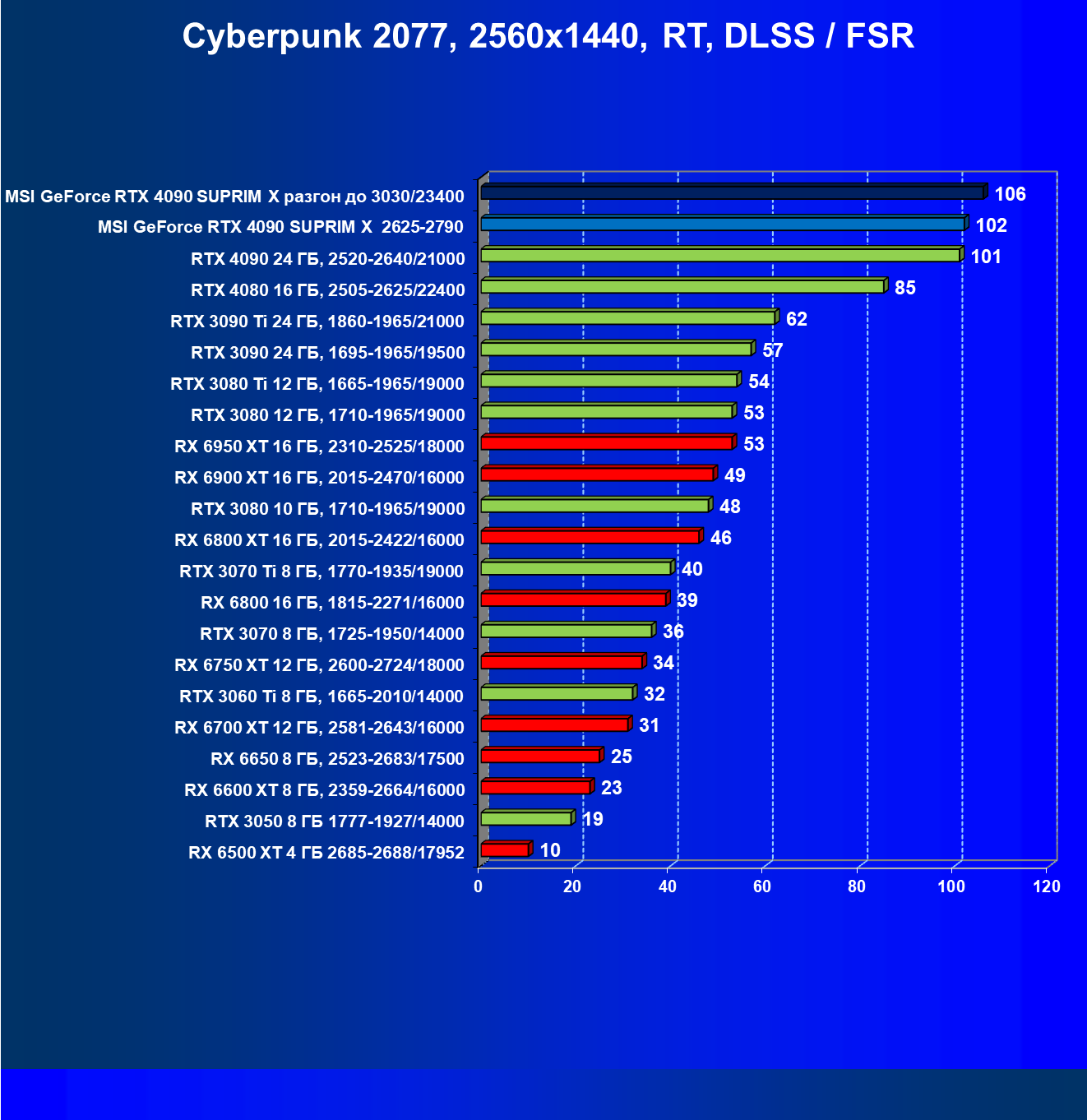 | 01 | MSI GeForce RTX 4090 Suprim X 24 ГБ, разгон до 2925/23400 | 1001 | 56 | 180 000 |