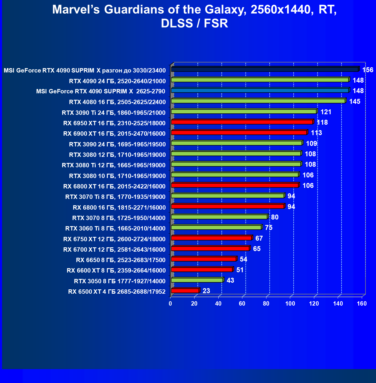 | 20 | MSI GeForce RTX 4090 Suprim X 24 ГБ, разгон до 2925/23400 | 56 | 1001 | 180 000 |