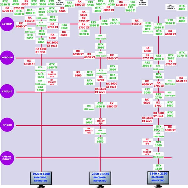 | 20 | RTX 4080 16 ГБ, 2505—2625/22400 | 41 | 498 | 120 000 |