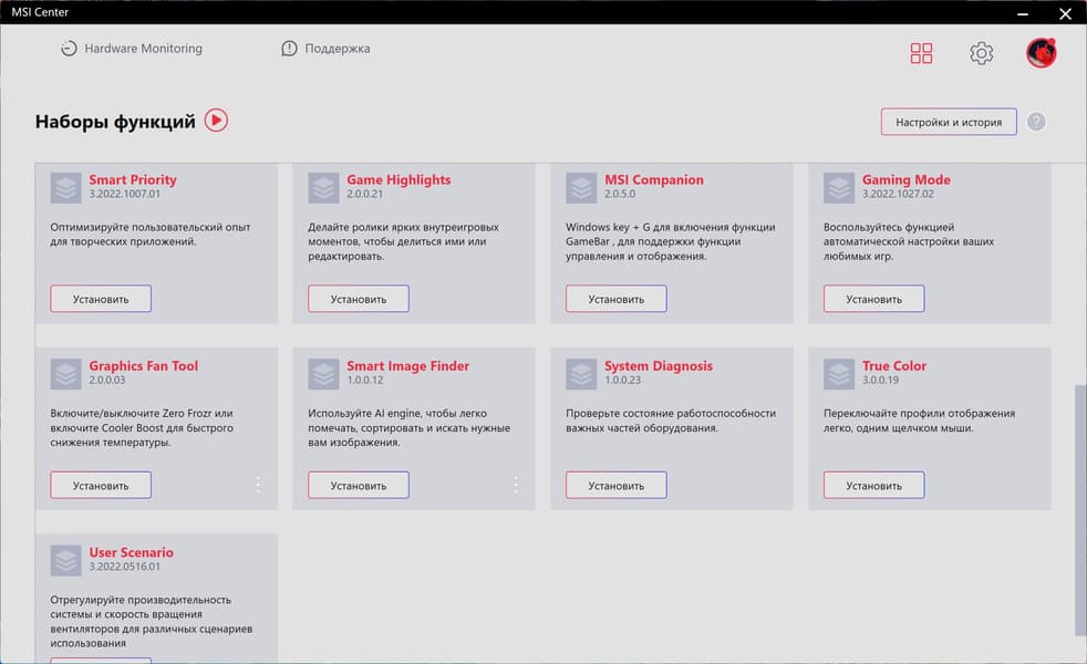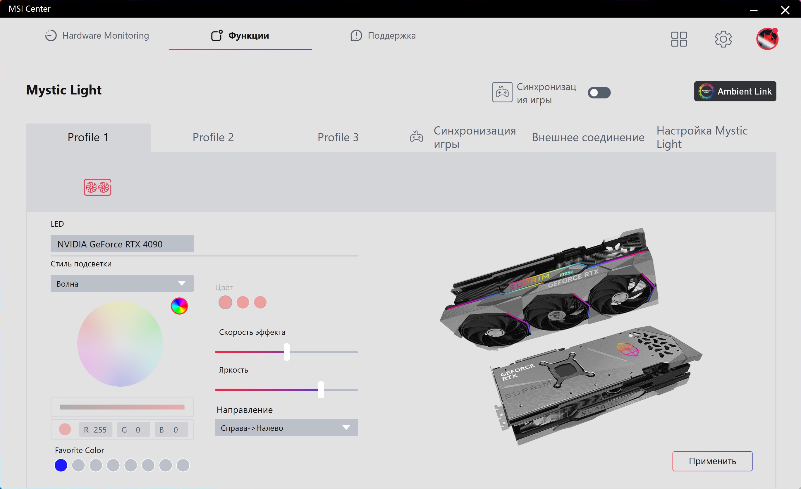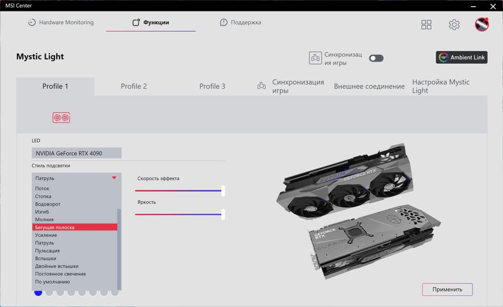 Управление работой карты обеспечивается с помощью фирменной утилиты MSI Center.
