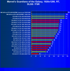 Результаты тестов со включенной аппаратной трассировкой лучей и/или DLSS / FSR в разрешениях 1920×1200, 2560×1440 и 3840×2160