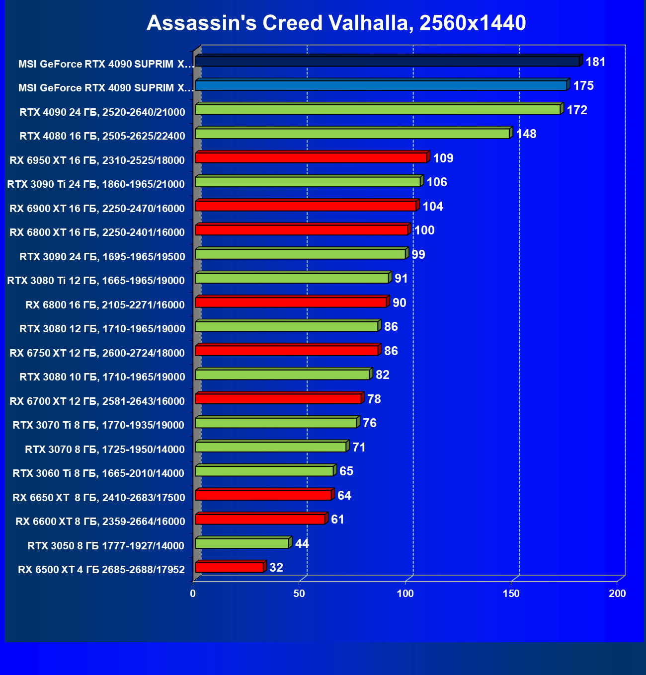 | 02 | MSI GeForce RTX 4090 Suprim X 24 ГБ, 2625—2790/21000 | 576 | 32 | 180 000 |