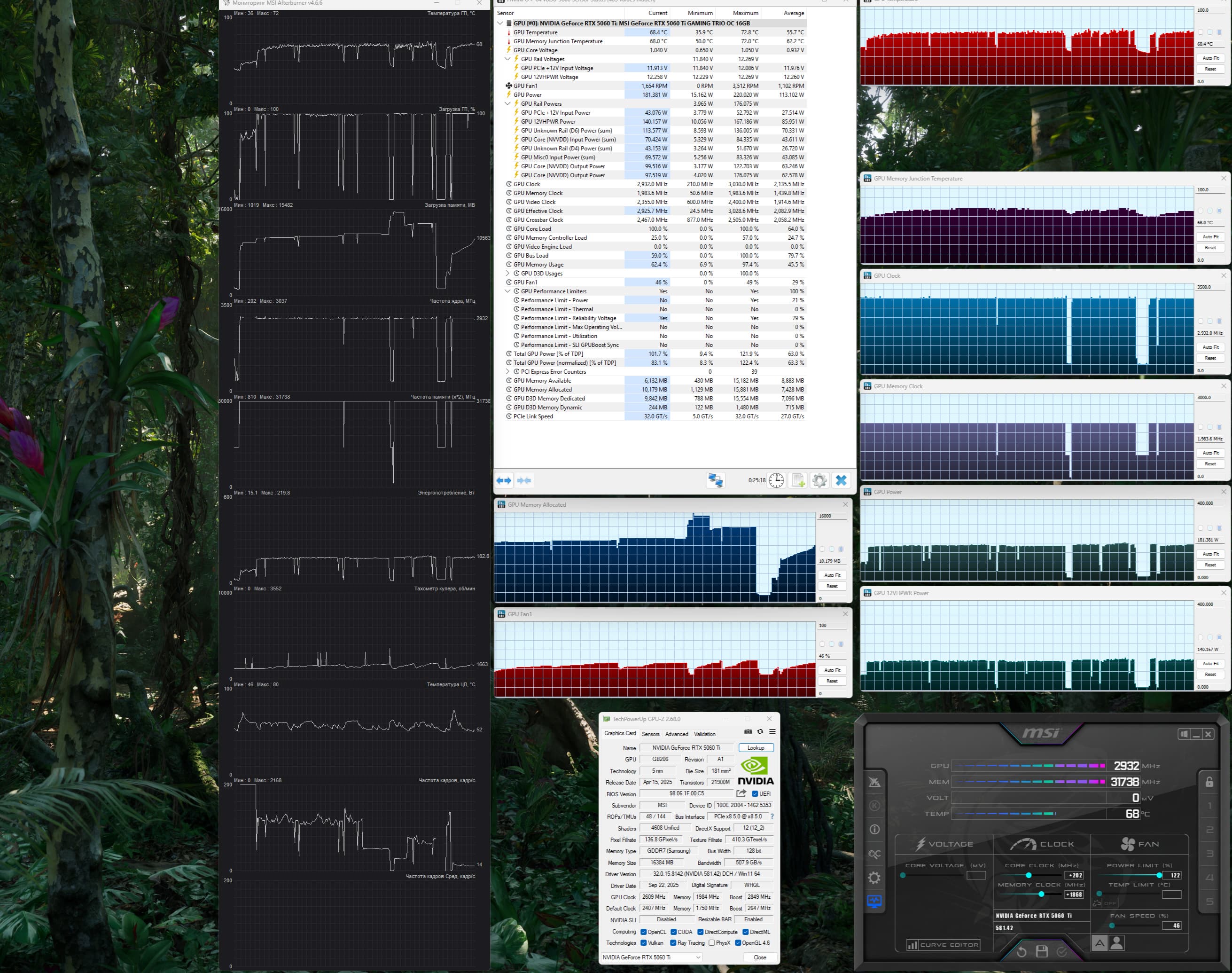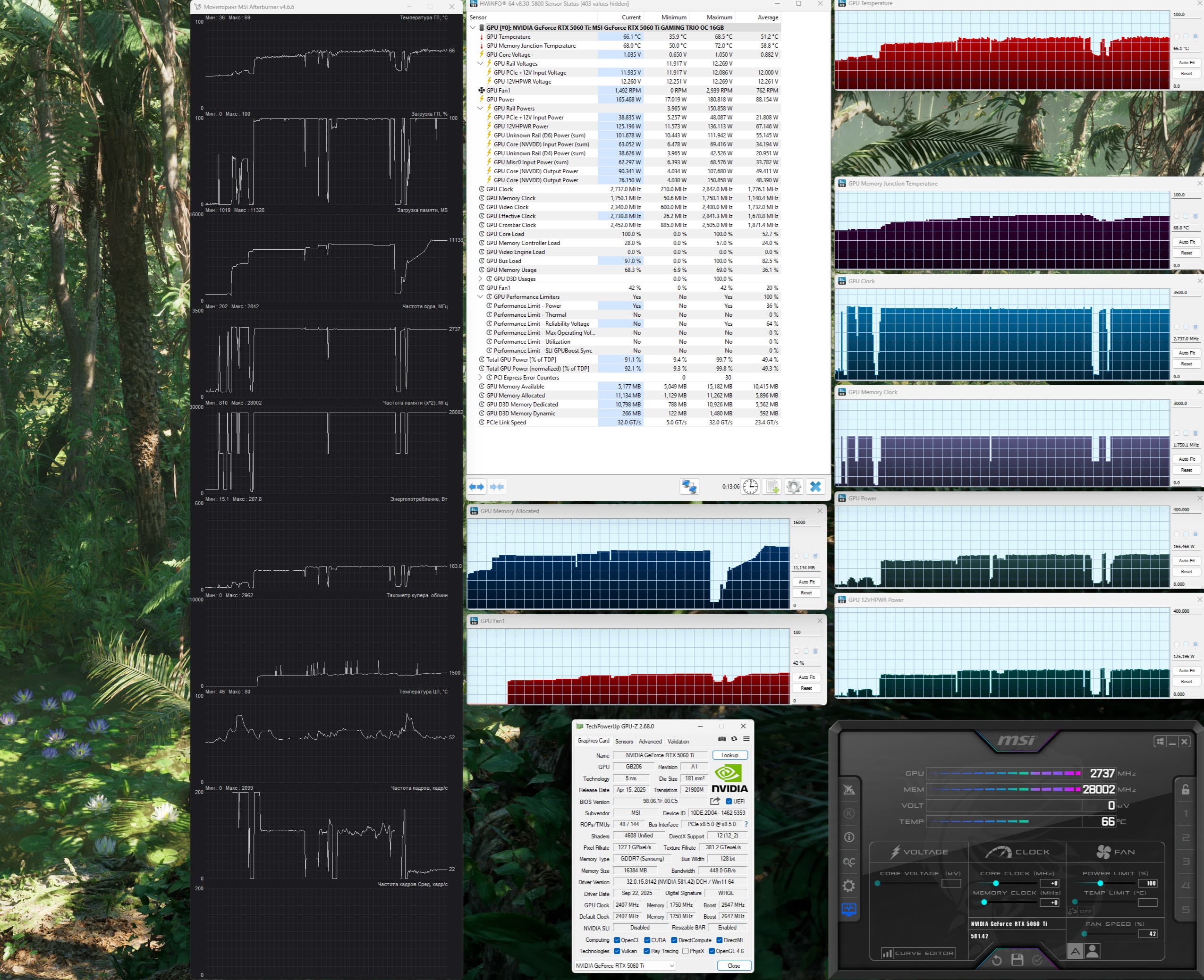 | 13 | MSI RTX 5060 Ti Gaming Trio 16 ГБ, разгон до 3030 МГц/31,8 ГТ/с | 1397 | 279 | 50 000 |