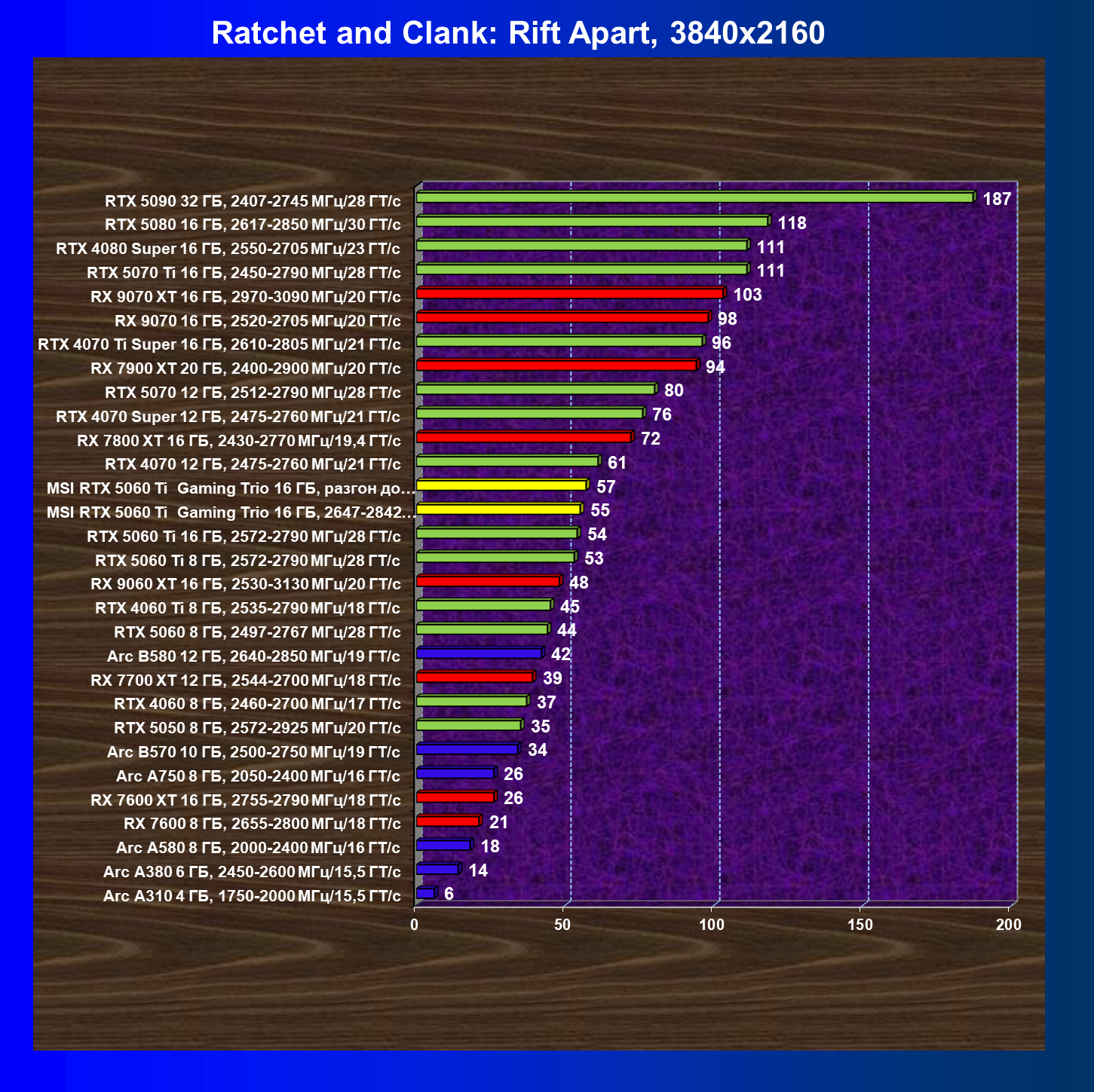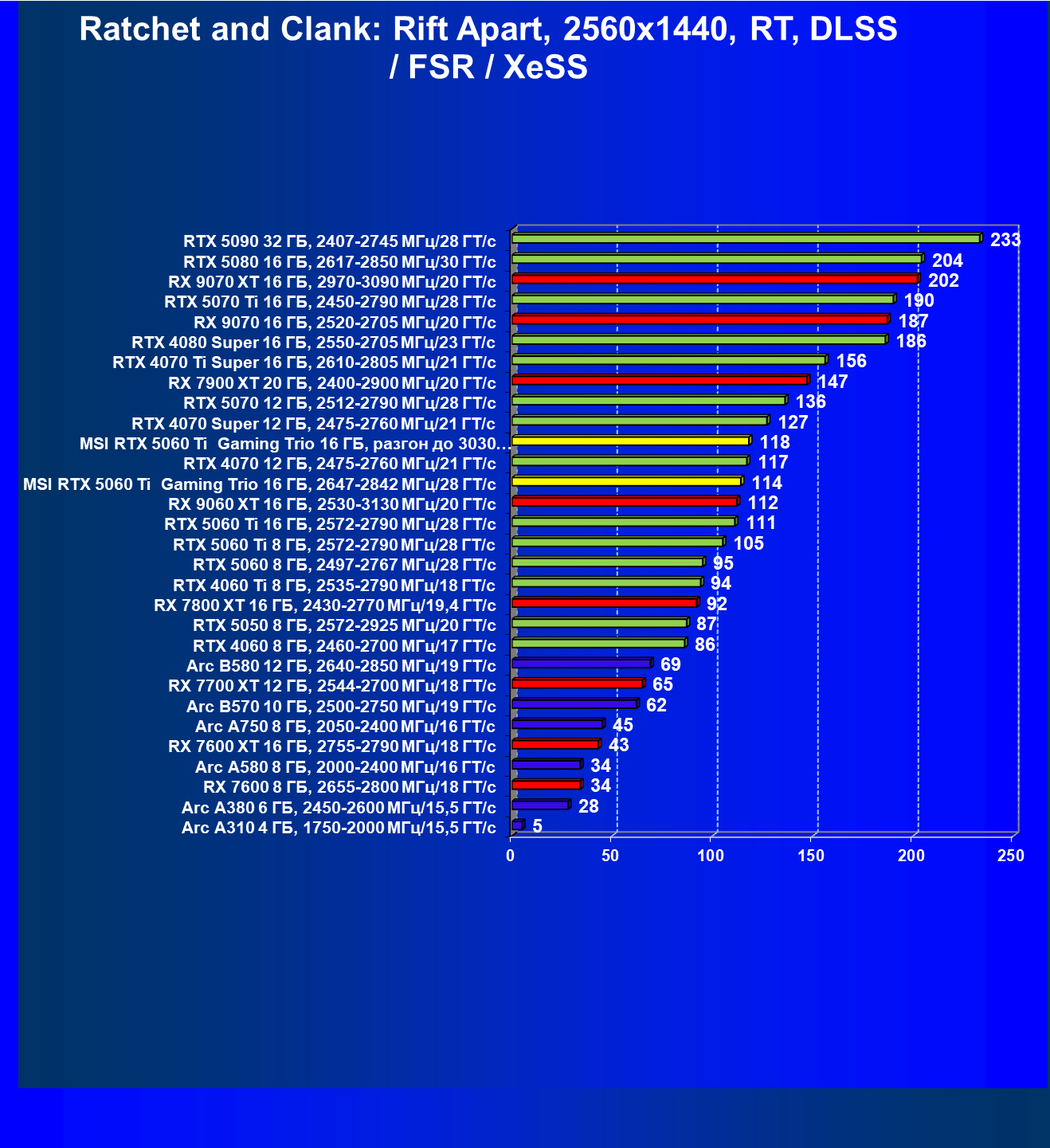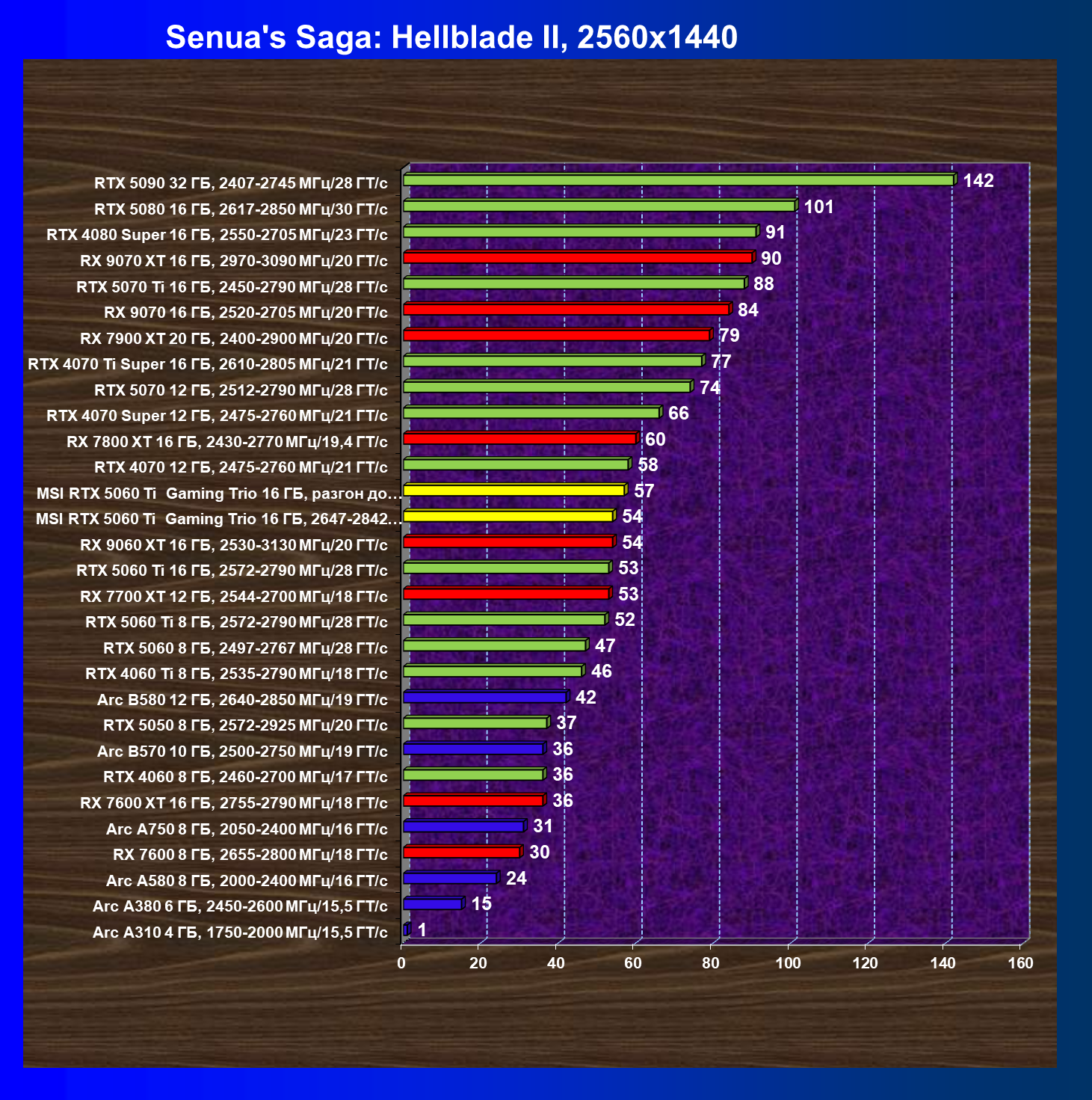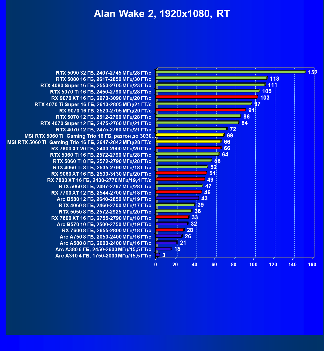 В данном рейтинге учитываются только результаты в играх без включения RT и техник апскейлинга, в целом даже в классических играх RTX 5060 Ti (16 ГБ) смотрится неплохо.