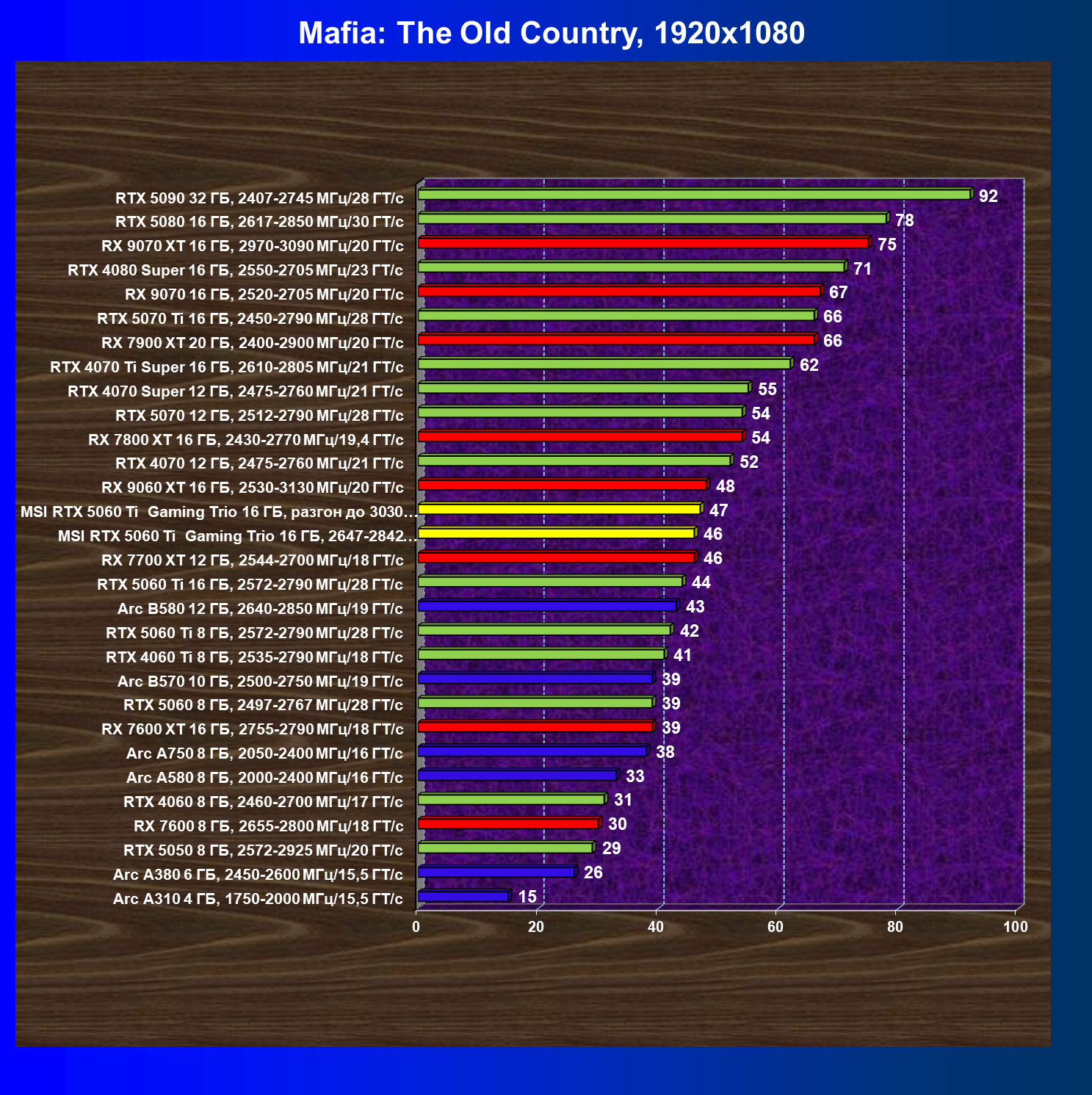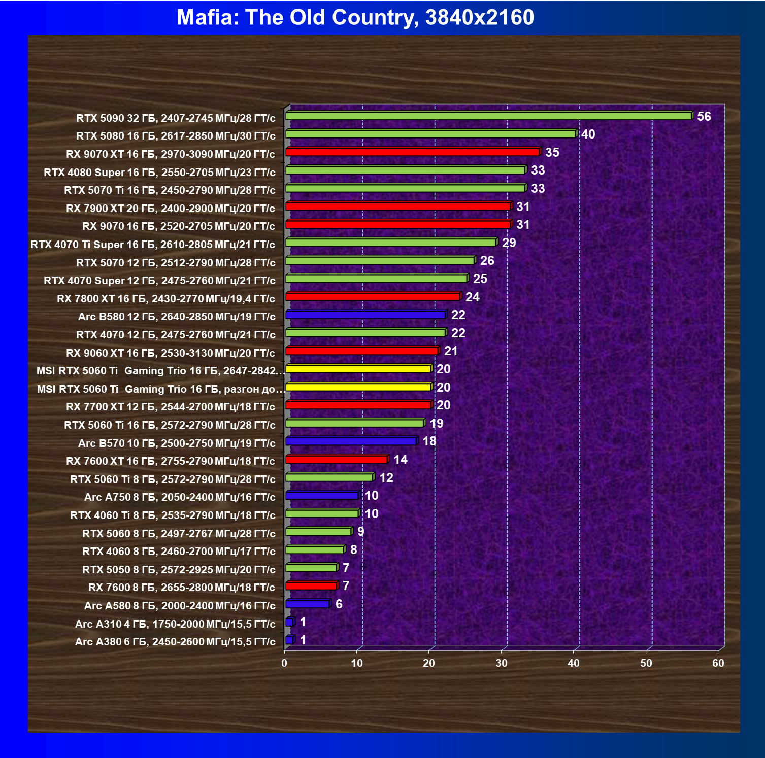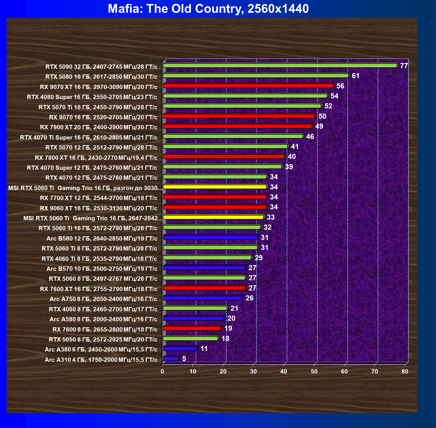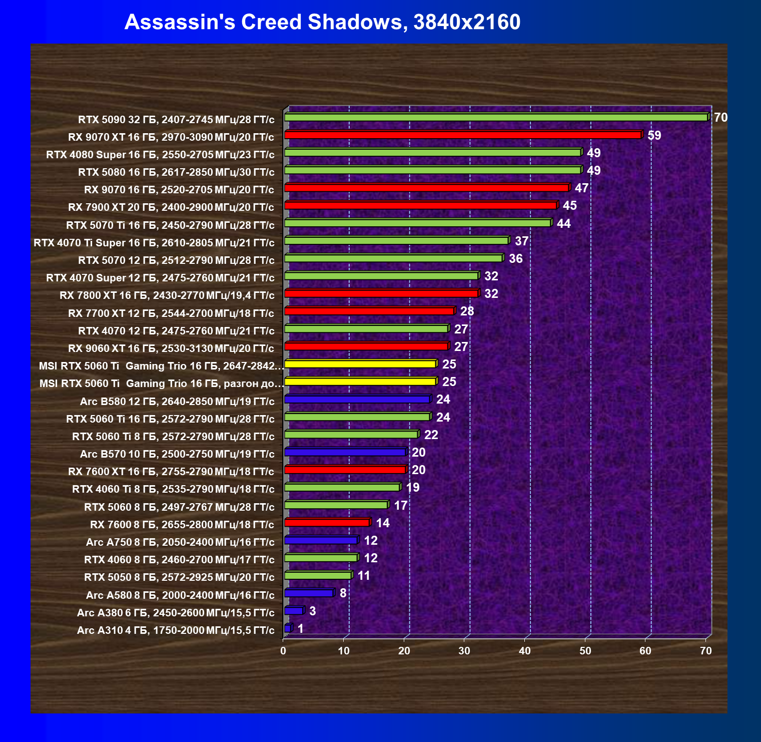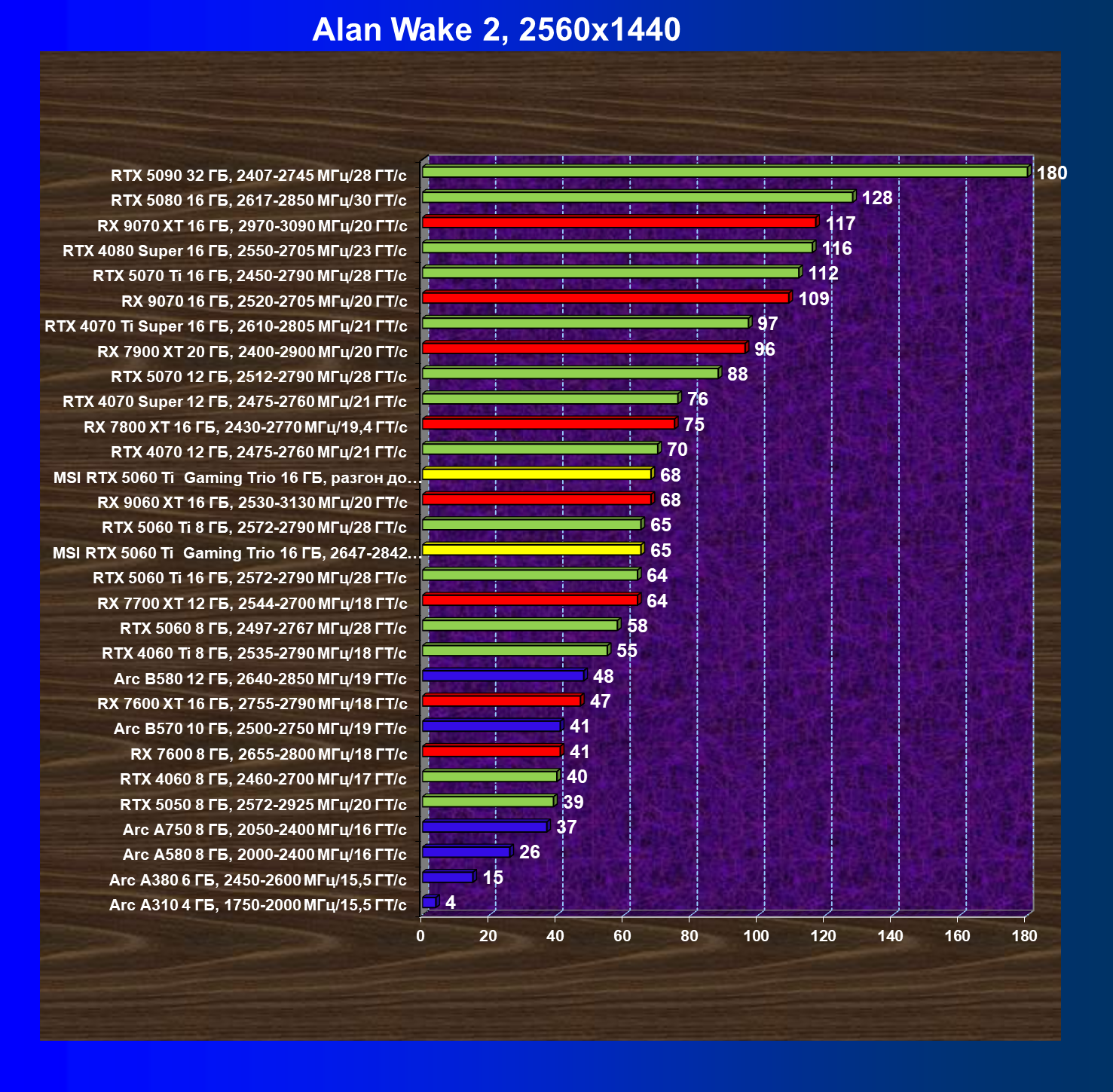 В данном рейтинге учитываются только результаты в играх без включения RT и техник апскейлинга, в целом даже в классических играх RTX 5060 Ti (16 ГБ) смотрится неплохо.