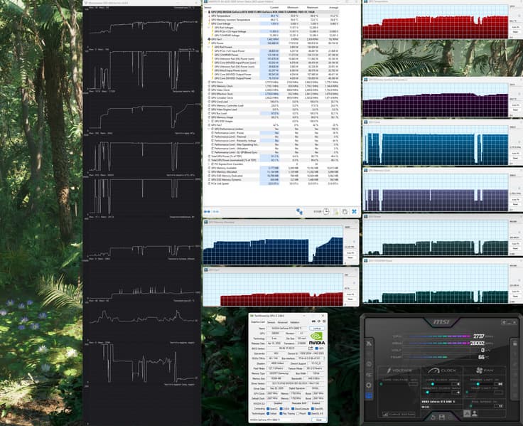 Я попробовал ручной разгон (предел лимита потребления можно поднять на 22%) и получил максимальные частоты 3030/31738 МГц, что обеспечило прирост в играх в среднем на 6,2% относительно референсных значений. При этом энергопотребление карты выросло до 220 Вт.