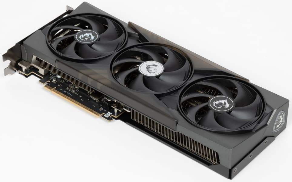 MSI GeForce RTX 5060 Ti 16G Gaming Trio OC (16 ГБ) — ускоритель скорее бюджетного уровня, снабженный, тем не менее, мощным трехвентиляторным кулером, с которым карта не укладывается даже в два слота по толщине. Но зато этот кулер работает практически бесшумно, не допуская нагрева GPU выше 70 градусов, что вполне адекватно при общем потреблении до 180 Вт (до 220 Вт при ручном разгоне). А вот единственный разъем питания — 16-контактный PCIe 5.0, хотя многим было бы удобнее использовать 8-контактный «хвост» от БП старого формата. У карты 4 видеовыхода: 1 HDMI 2.1b и 3 DisplayPort 2.1b — последний обеспечивает пропускную способность до 80 Гбит/с в режиме передачи UHBR 20 и позволяет подключить 8K-дисплей с частотой обновления 60 Гц по одному кабелю.