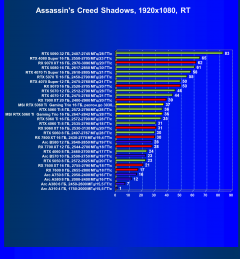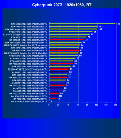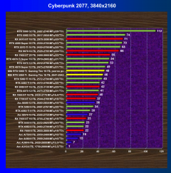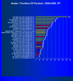 | 22 | RX 7700 XT 12 ГБ, 2544—2700 МГц/18 ГТ/с | 222 | 1286 | 58 000 |