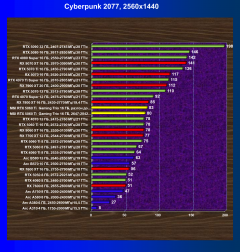 | 17 | RX 7800 XT 16 ГБ, 2430—2770 МГц/19,4 ГТ/с | 2211 | 280 | 79 000 |
