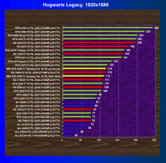 | 19 | RTX 4060 Ti 8 ГБ, 2535—2790 МГц/18 ГТ/с | 2006 | 501 | 40 000 |