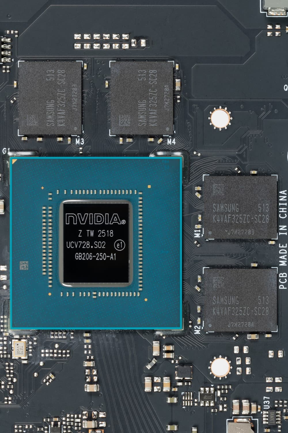 Ядро произведено на 18-й неделе 2025 года (кристалл выполнен по техпроцессу TSMC 4N — по разным оценкам это 5 нм). Маркировка — GB206-250, что означает урезанный в той или иной мере чип.