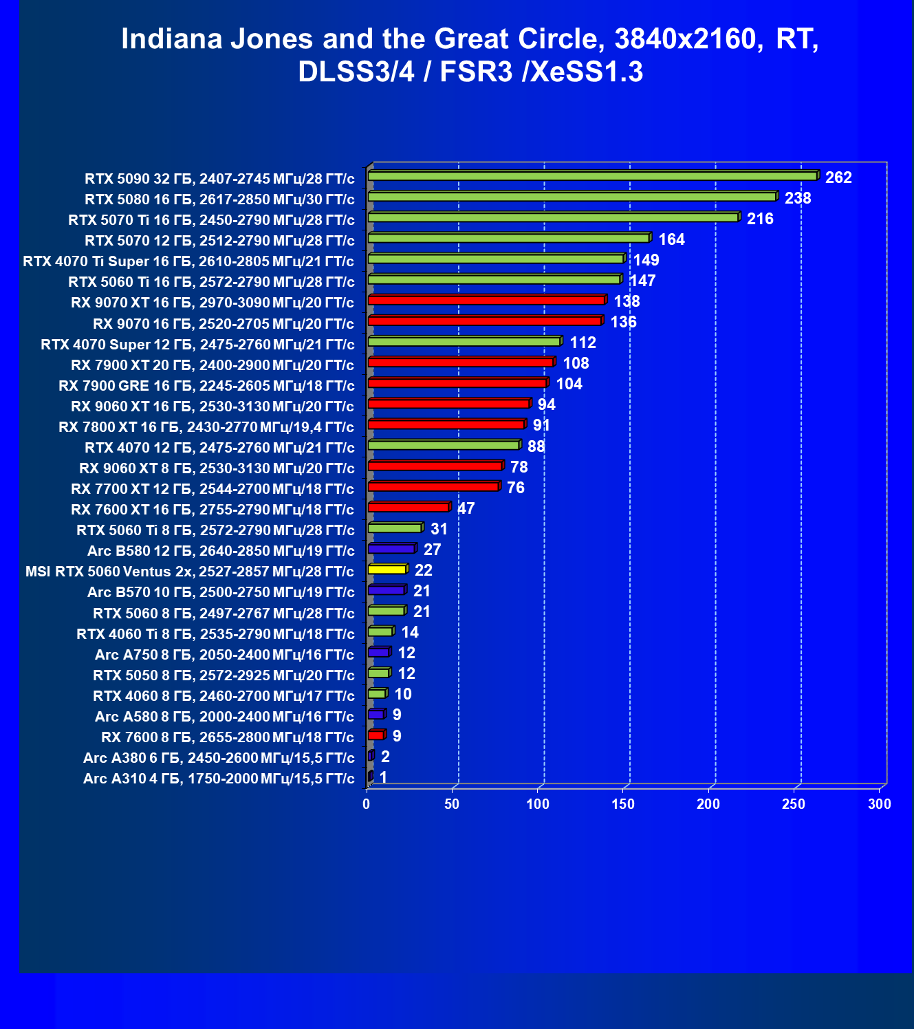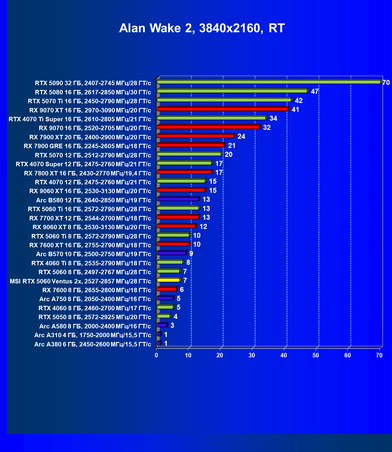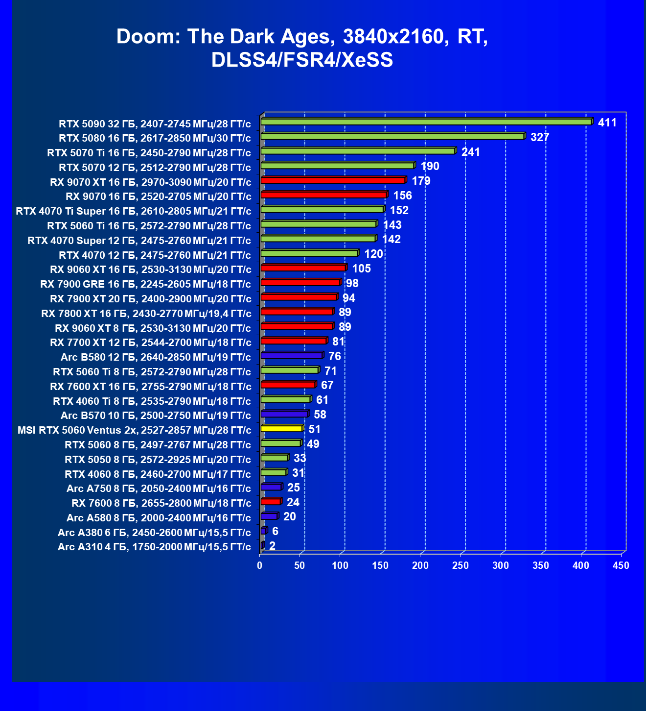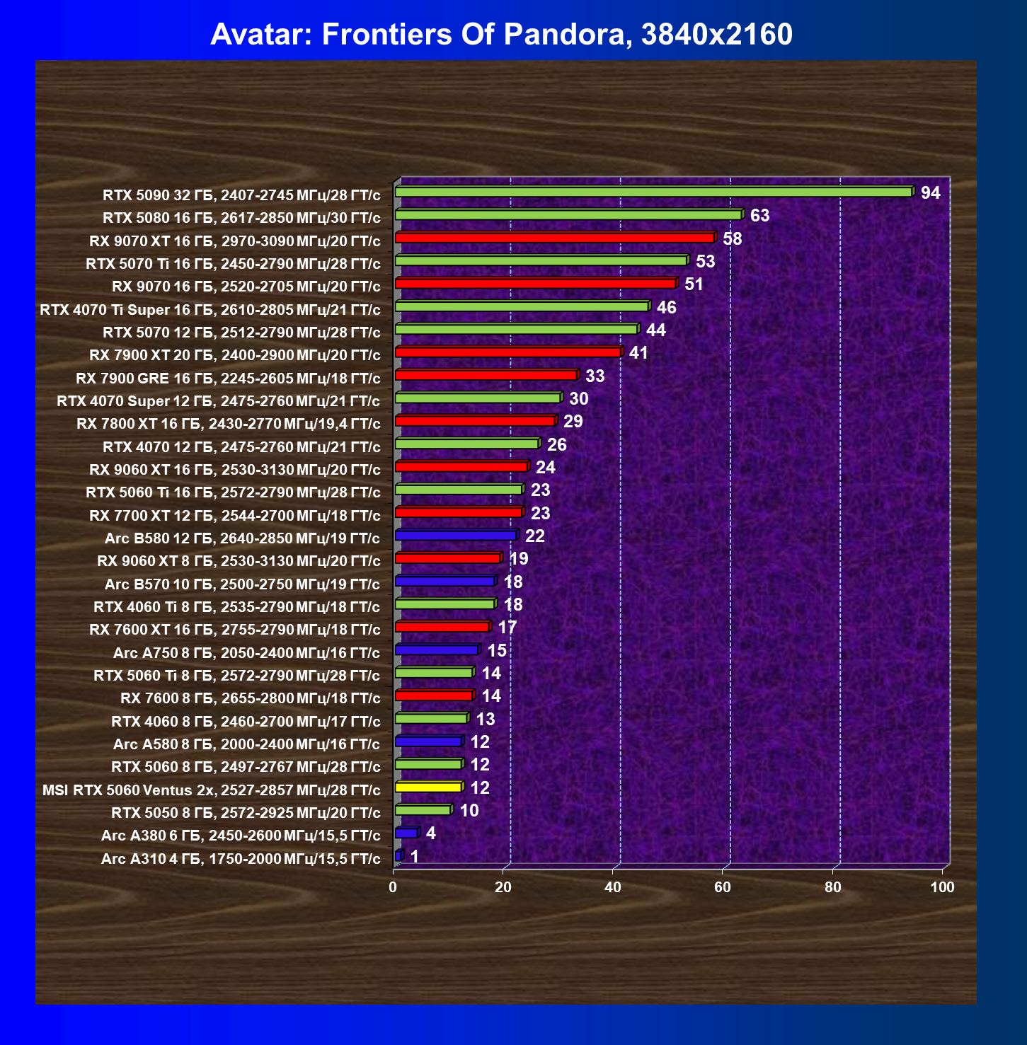 | 05 | RX 9060 XT 8 ГБ, 2530—3130 МГц/20 ГТ/с | 389 | 1324 | 34 000 |