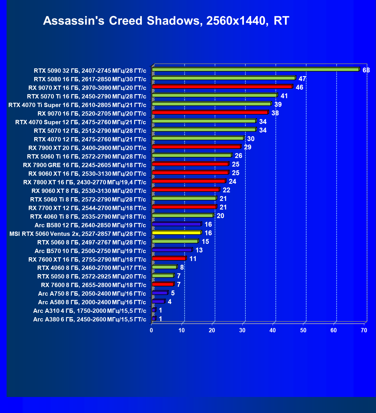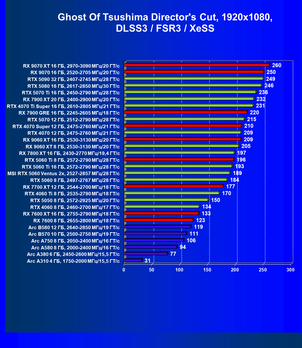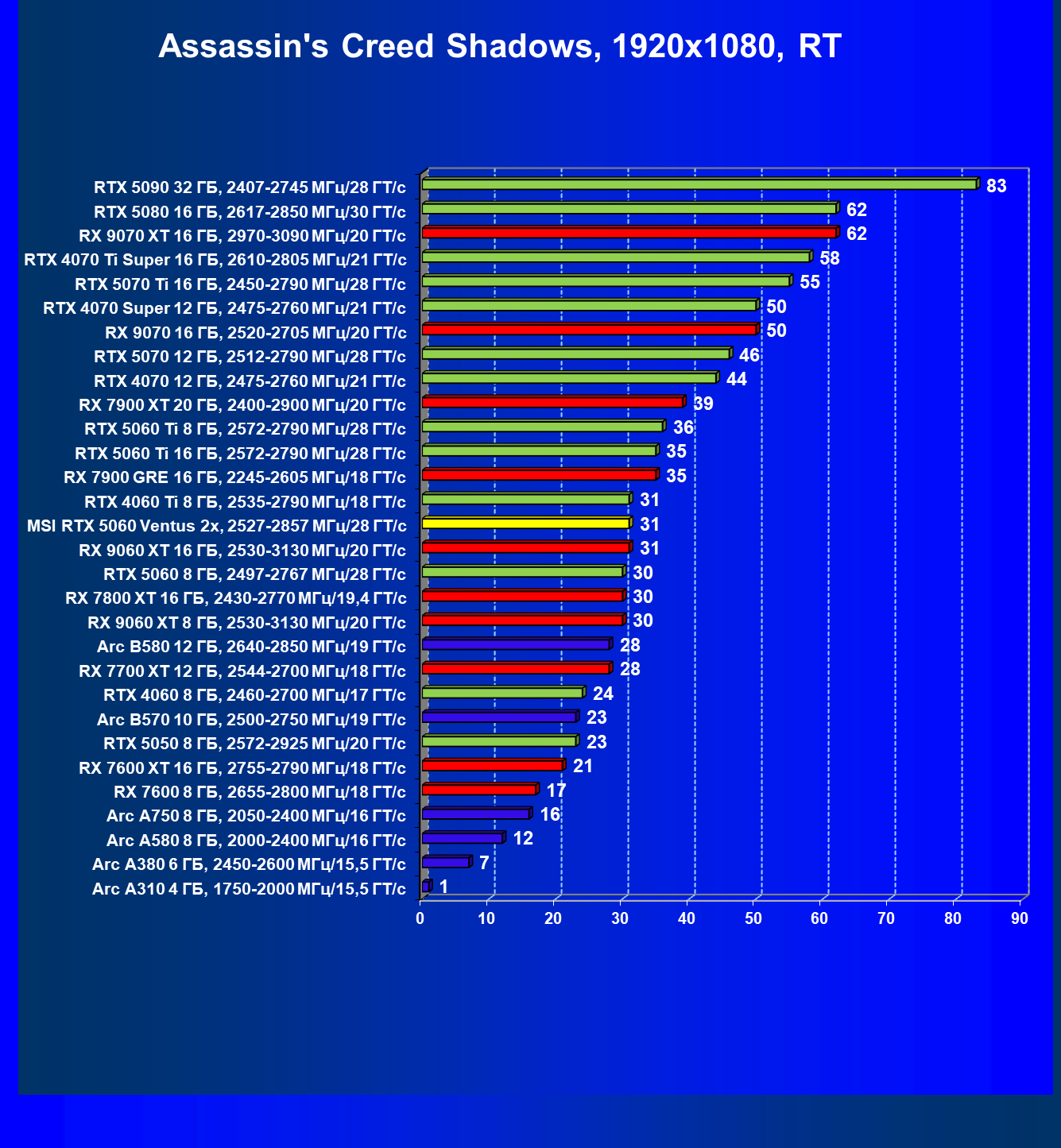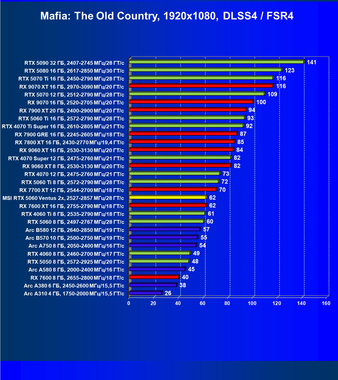 Напомню, что в данном рейтинге учитываются только результаты в играх без включения RT и DLSS, в целом в классических играх RTX 5060 смотрится очень хорошо!