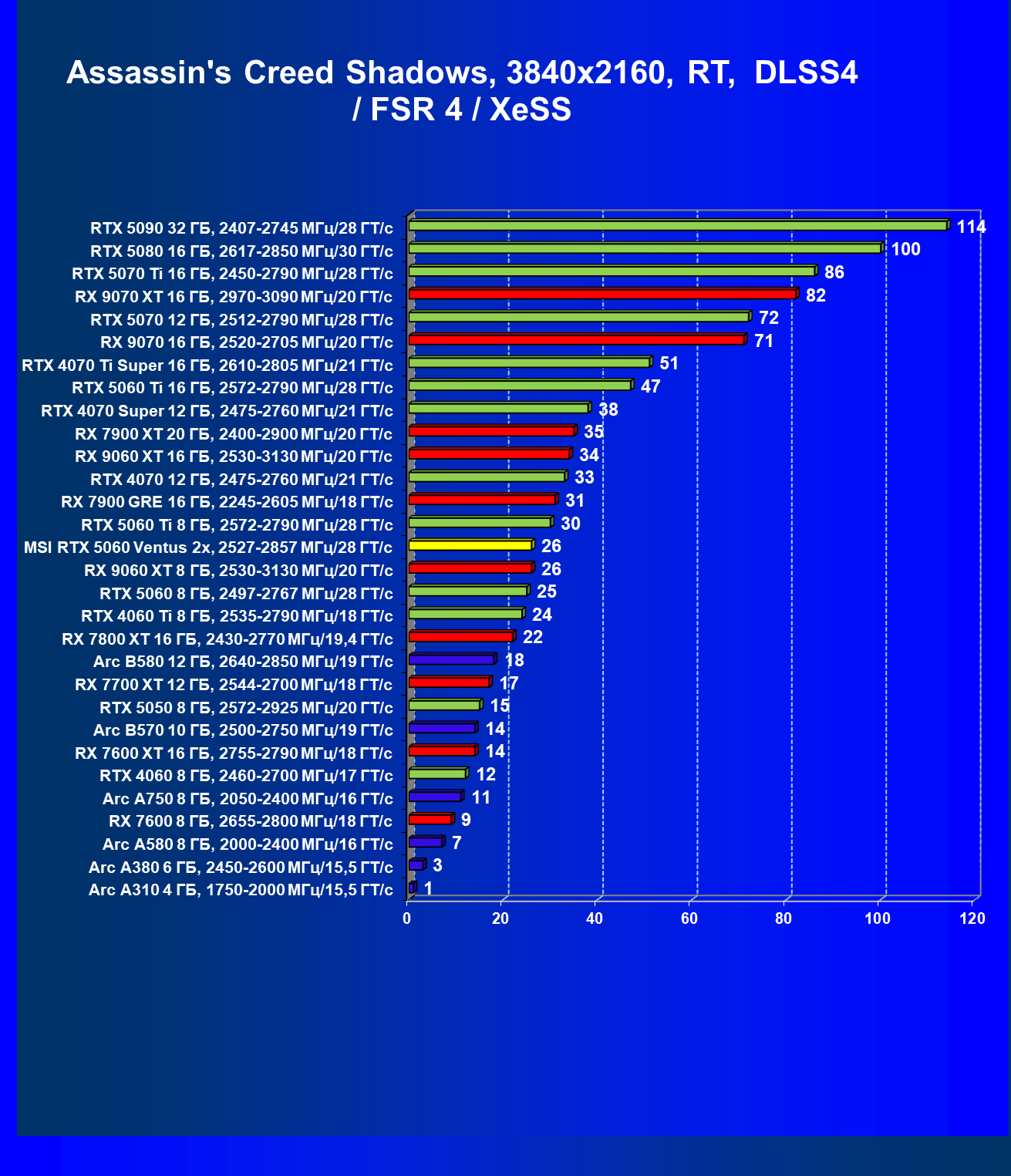 | 23 | Arc B580 12 ГБ, 2640—2850 МГц/19 ГТ/с | 879 | 314 | 28 000 |